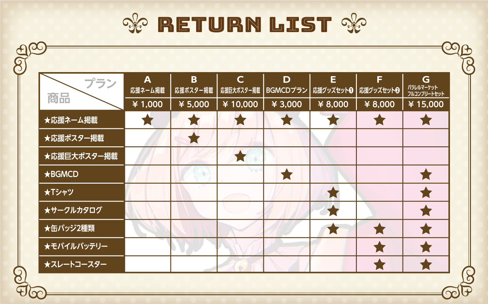 すべてのグッズがセットになったプランです。※ポスター掲示は含まれません。