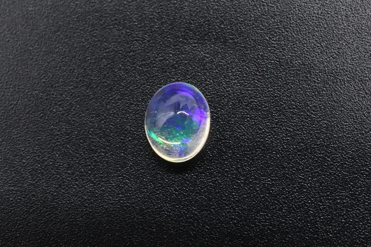 オパールがもつ色の魅力は、何といっても石の中で青、緑、赤、紫…とさまざまな色が動いて、ふわふわと遊び戯れているかのように見える独特な輝きです。 これはオパールだけに起こる“遊色効果(ゆうしょくこうか)”と呼ばれているものです。