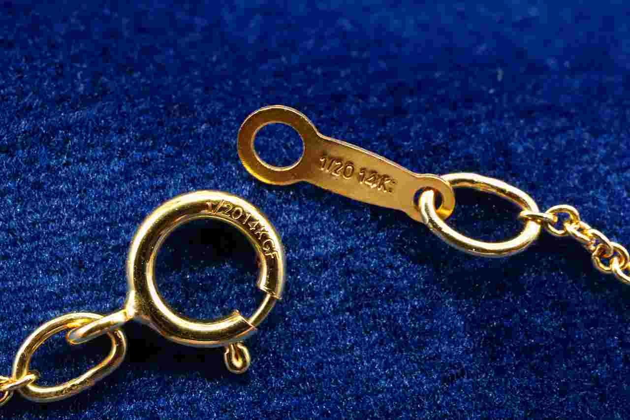 ゴールドフィルドは金メッキ(ゴールドプレイテッド)と比較して、金によるコーティングの層がはるかに厚いうえ、熱と圧力を加えてコーティングを圧着していることから、金メッキのようにすぐに皮膜が剥げてきてしまうような心配は殆どありません。耐久性に優れるゴールドフィルドは、アクセサリーパーツなどの宝飾品や装身具の素材として高い人気を誇ります。