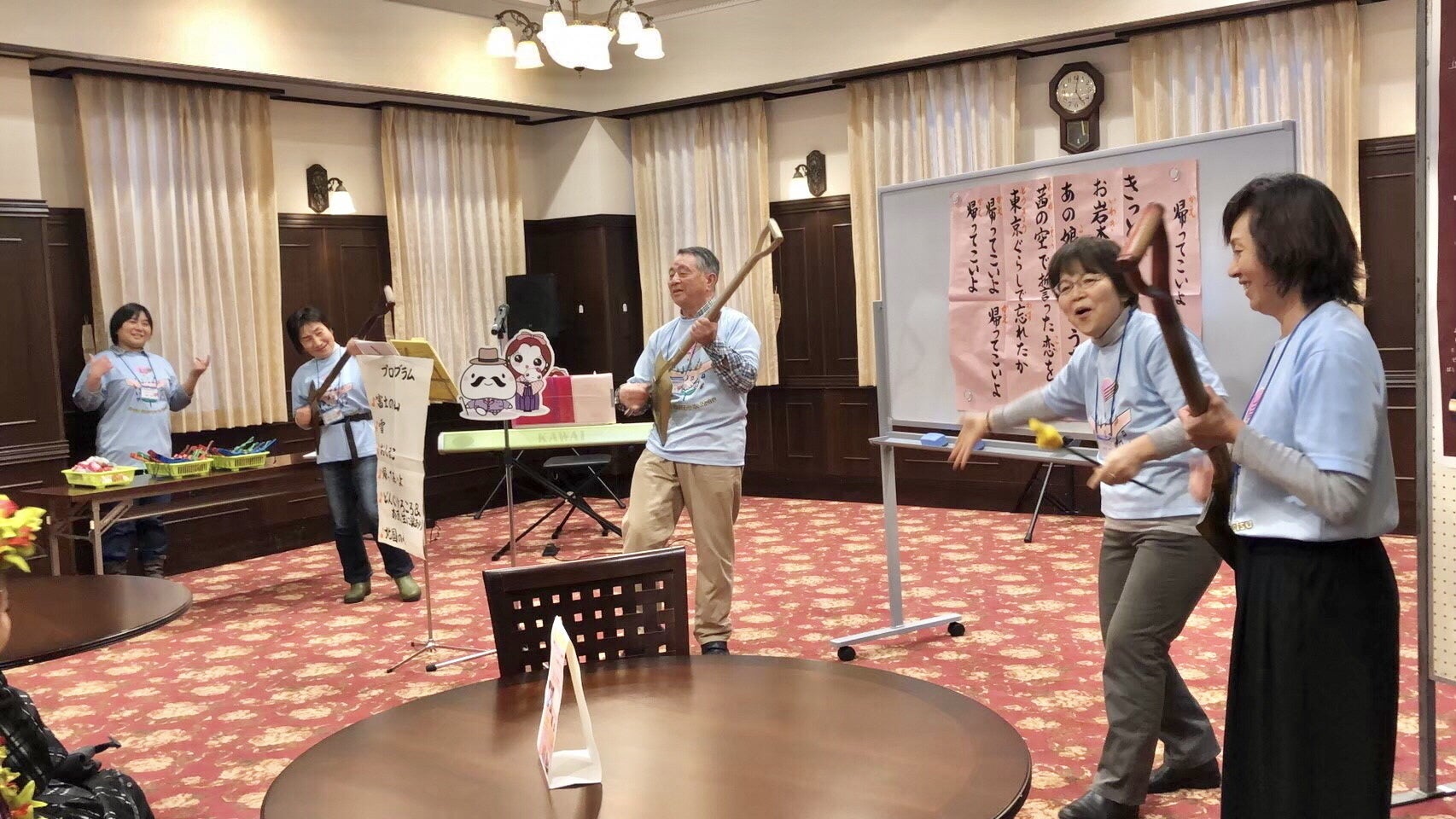 2021/10/17 16:56現場で使う歌詞幕は書家の宮本さんが作成しています。利用者さんからは字が美しく、大きくて歌詞が見やすいと好評です。すでに100枚以上作成して頂いています。10月15日、ビデオレター撮影に向けて練習しました。水戸黄門の衣装も本格的になりました笑 もっと見る