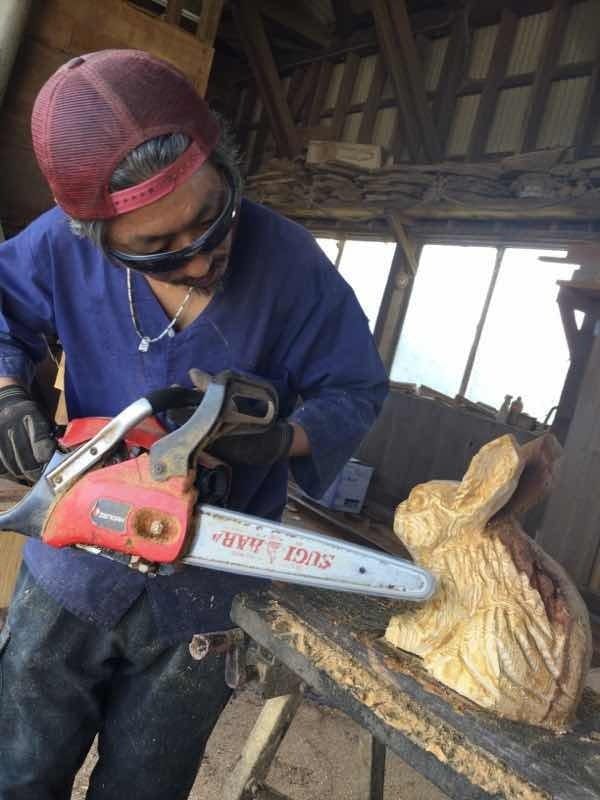 本日もご支援ありがとうございます。夕方から少し涼しかったので小ぶりなウサギをチェーンソーで彫ってました。こちらもリターン用と同サイズでインテリアにピッタリサイズです。ここから乾燥させて焼き塗装仕上げをして完成です。