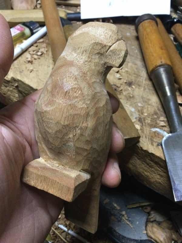今日は仕事の合間に注文品のインコを彫刻刀で彫ってました。画像を確認しながらコツコツとゆっくりと彫っていきます。気の永い作業ですが心が落ち着きます。