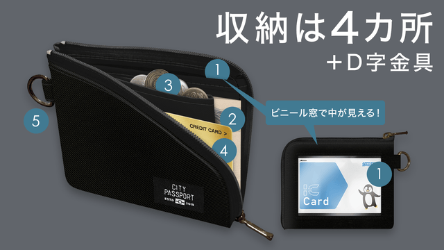 D菅にはカラビナやチェーンをつけれますので、モノを落としやすいお子様や、物騒な海外地域でも肌身離さず使用できます。