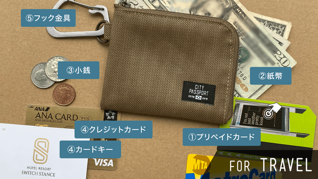 旅行でもお金、カードに加え、ホテルのカードキーを収納できます。また海外の判別しずらいコインを窓枠ポケットに入れておくと、現地のスタッフがどれを使用できるか教えてくれます。