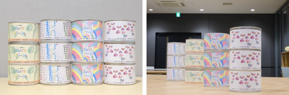 缶詰のカラフルなラベルは,社会福祉法人若草会の障がいある方々に4パターン描いてもらいました。保存中に見ただけで楽しくなるような,目にも美味しい缶詰づくりを心掛けました。