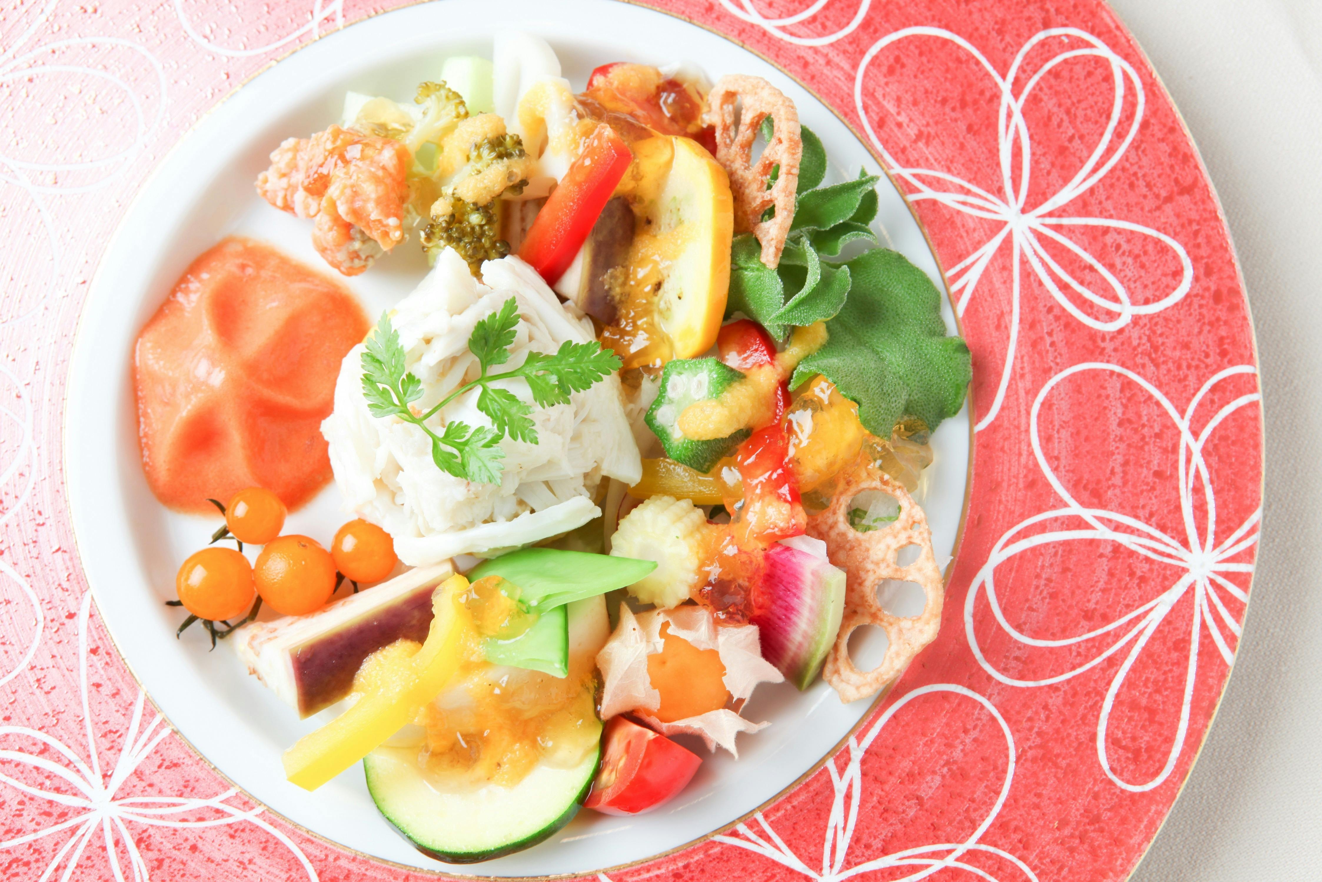 コースでも前半でこのほぐし身サラダをお出ししています。