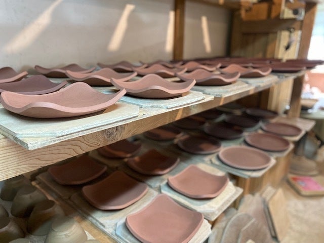 工房にはたくさんの器が並んでいて、全部レストランの器だそうです。