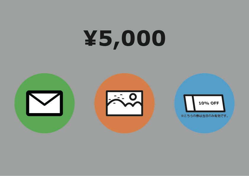 ¥5,000 お礼メッセージ(送料込)+オリジナルポストカード+10%OFFクーポン(当日のみ有効)