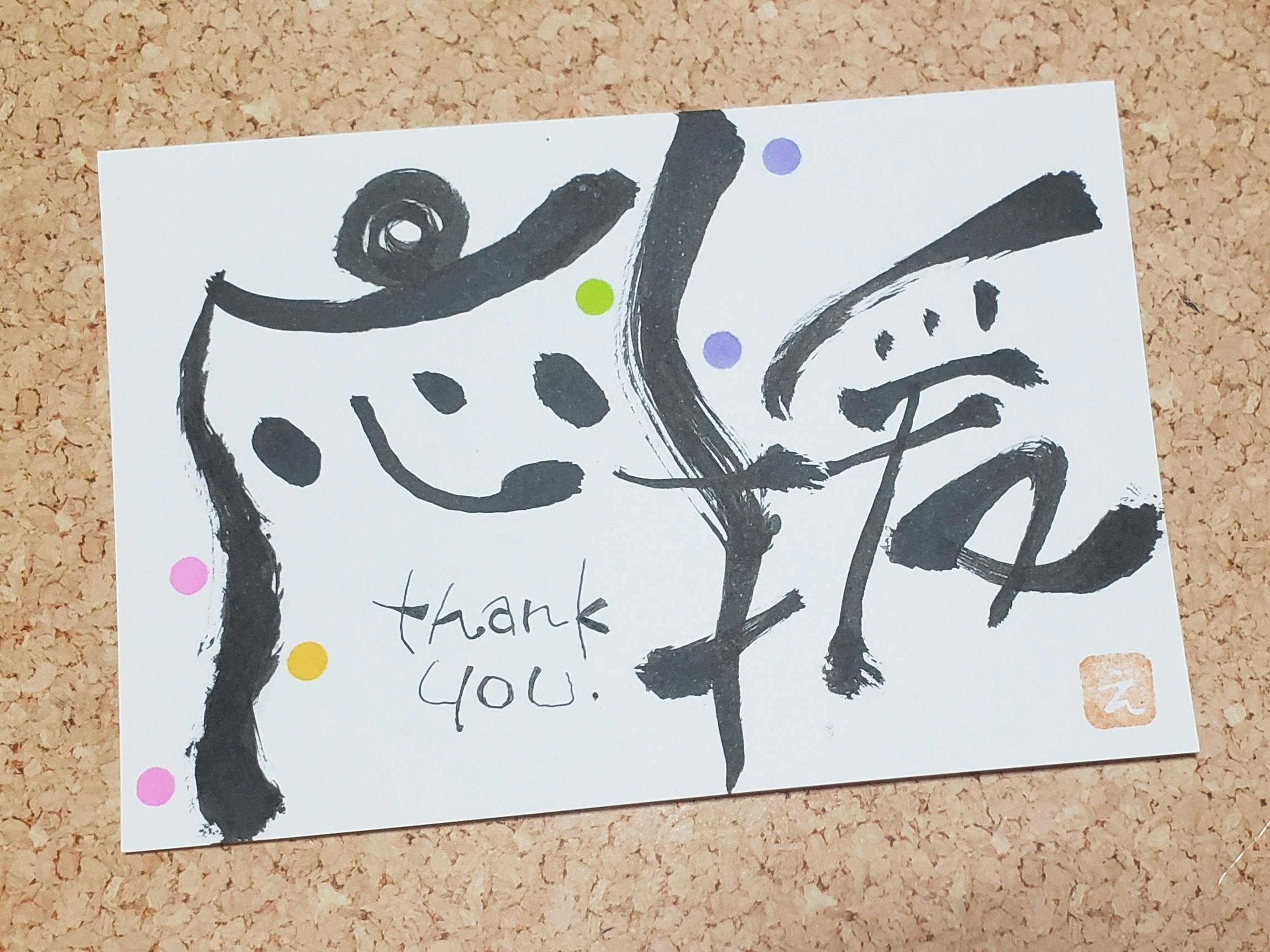 感謝を筆文字アートで表しました。本当にありがとうございます。どうぞ最後まで見守っていてください♪