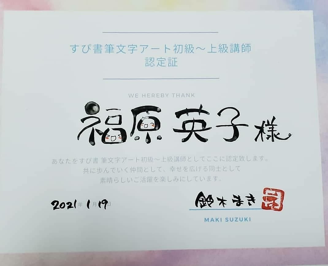 2021年1月には講師講座ができ、大喜びで受講し晴れて筆文字講師にもなりました。