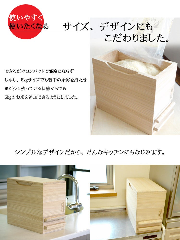 桐の調湿機能により最後の一粒までお米のおいしさ守ります。