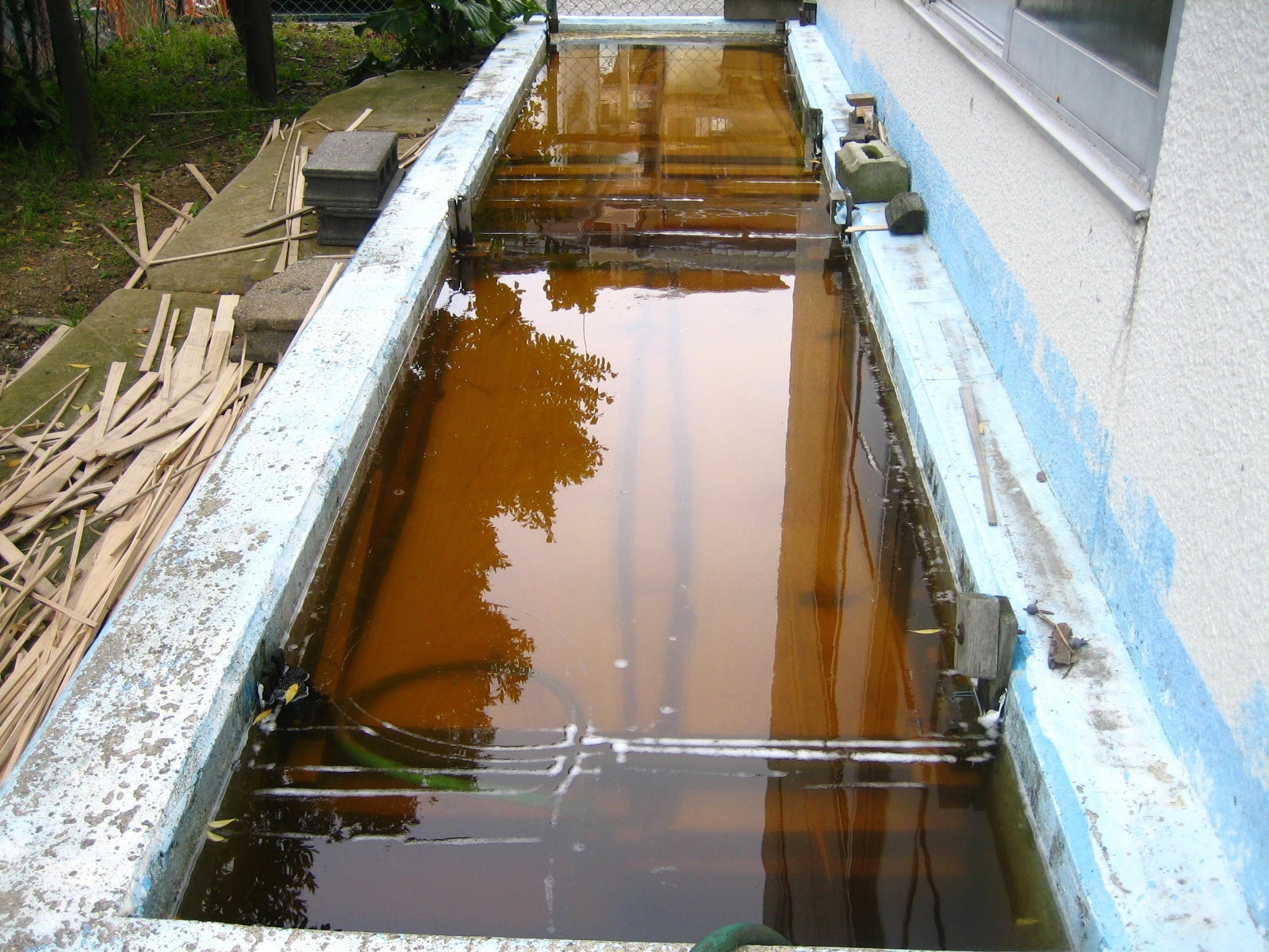 桐材を水槽につけて灰汁抜きし、