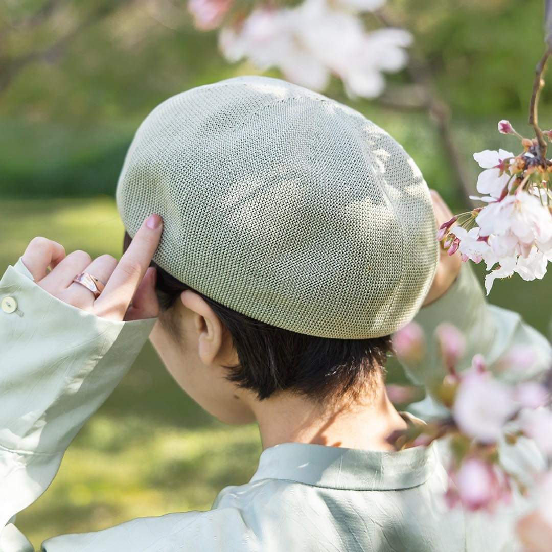 ベレー帽の縫製は綿糸を使用し、汗止めテープなども桐生地で作った土に還るサスティナブル帽子で
