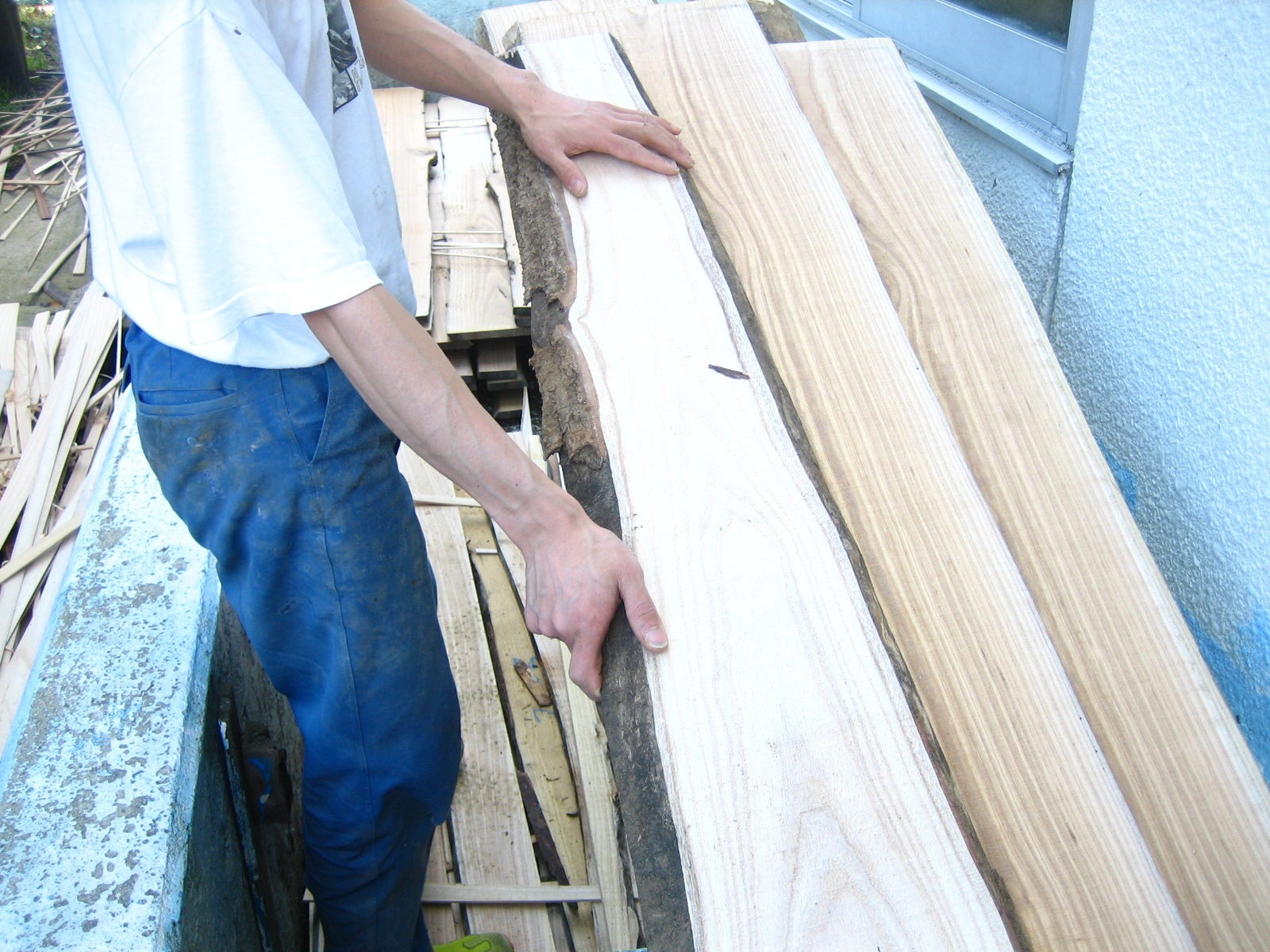 工場の屋上で一年ほど天日干しをします。