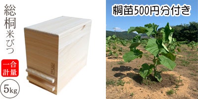 桐製米びつ一合計量5kgサイズ+桐の植林応援費500円分+お礼のメッセージ