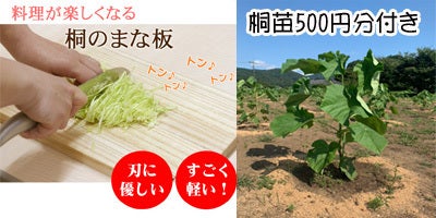 桐のまな板+桐の植林応援費500円分+お礼のメッセージ