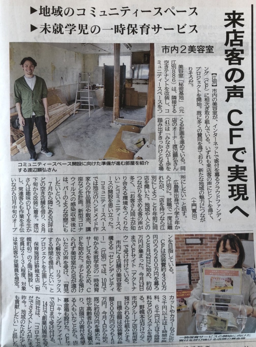 今回のプロジェクトを北海道新聞江別版の朝刊で取り上げていただきました!