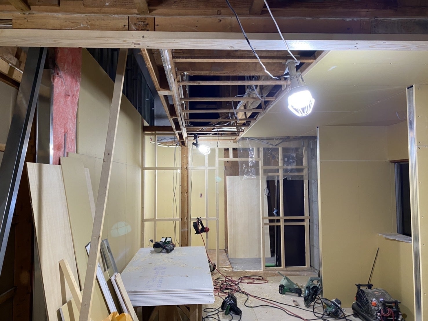 解体作業が終わり、内装工事も着々と進んでおります。