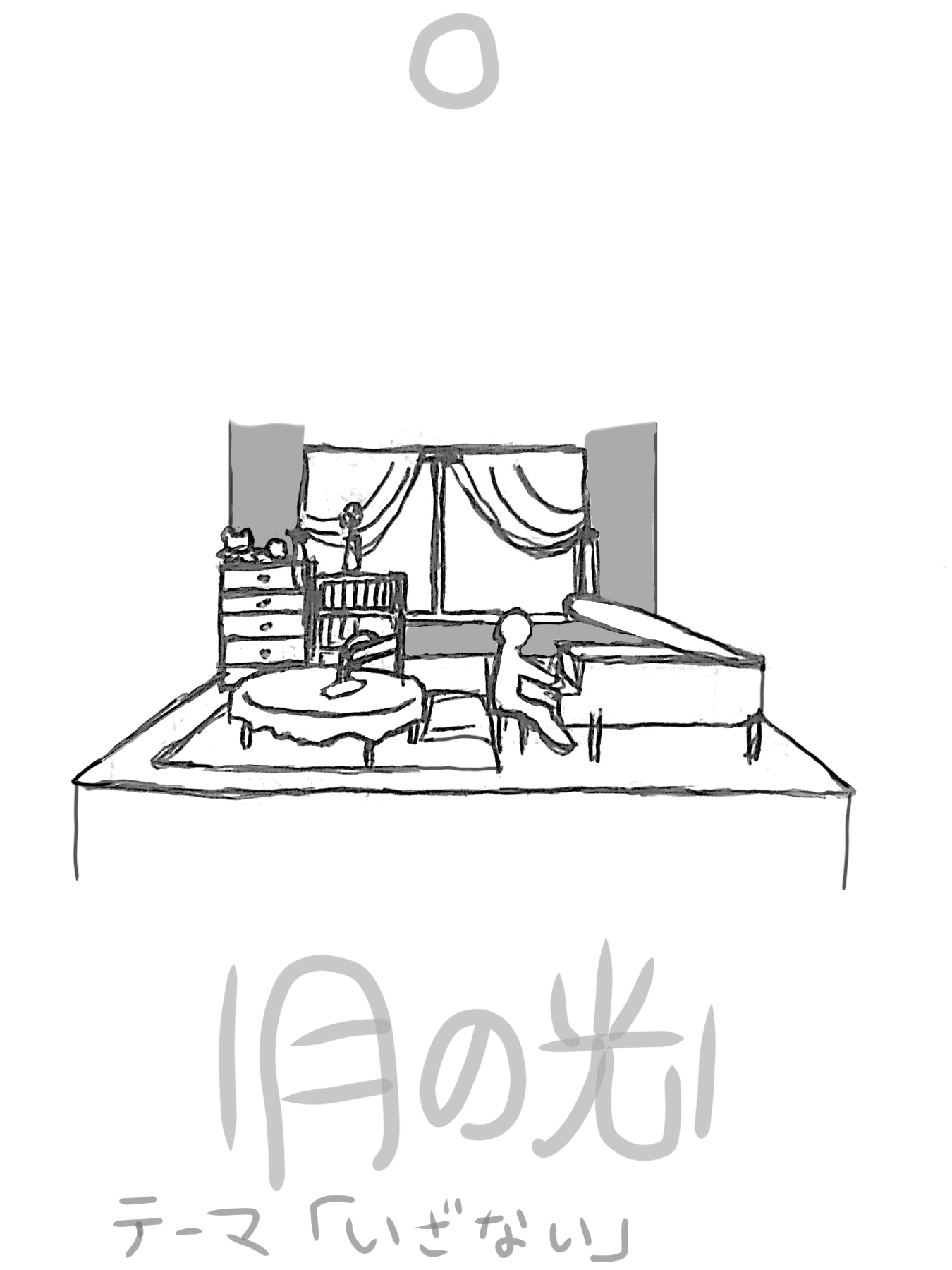 (会場には屋根があるため、イメージスケッチのように、上を見上げるとすぐ月が見えるようにはいきません。恐らく、体の向きを少し変えると見える感じになるかと思われます。)