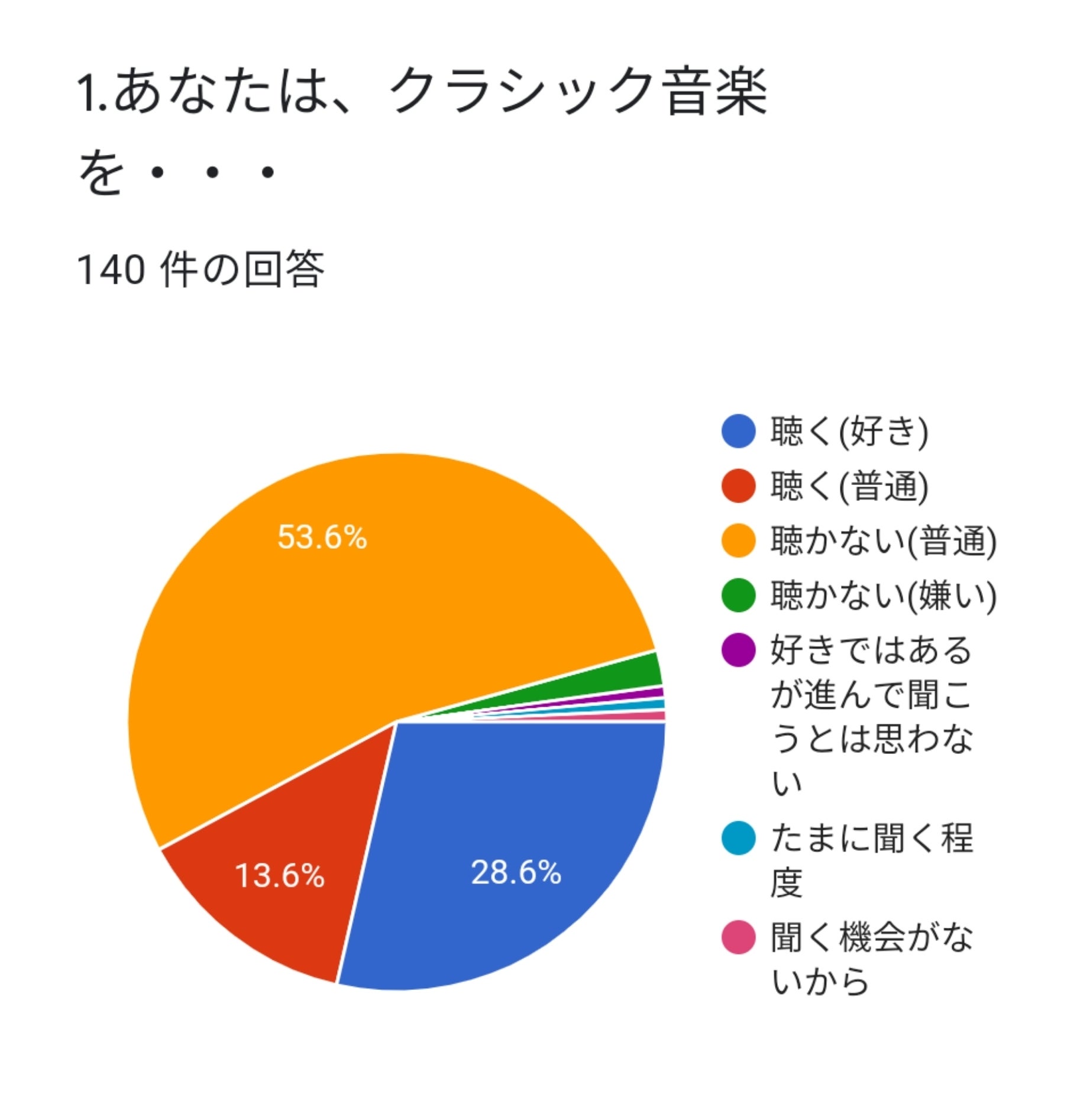 と、聴かない(普通)が圧倒的に多い結果になりました。つまり、「聴かないし、嫌いという感情を持つほど聴いたことないし、普通かな?」という、クラシックに対して関心度の低いことが分かるアンケート結果となったのです。関心度が低いということは、関心してもらうような工夫をしなければなりません。このアンケートの結果から、大まかな演出の方向性が決定しました。