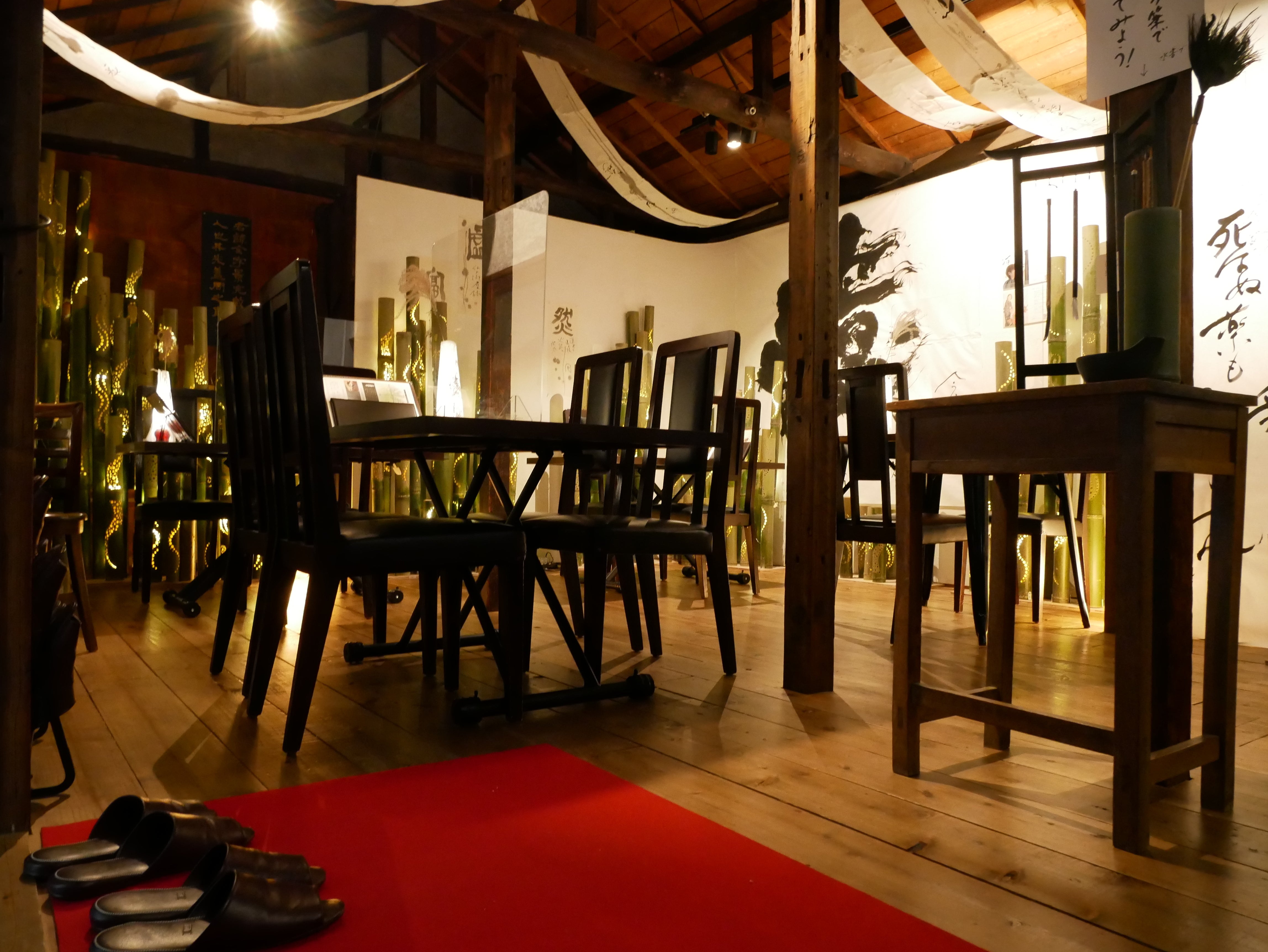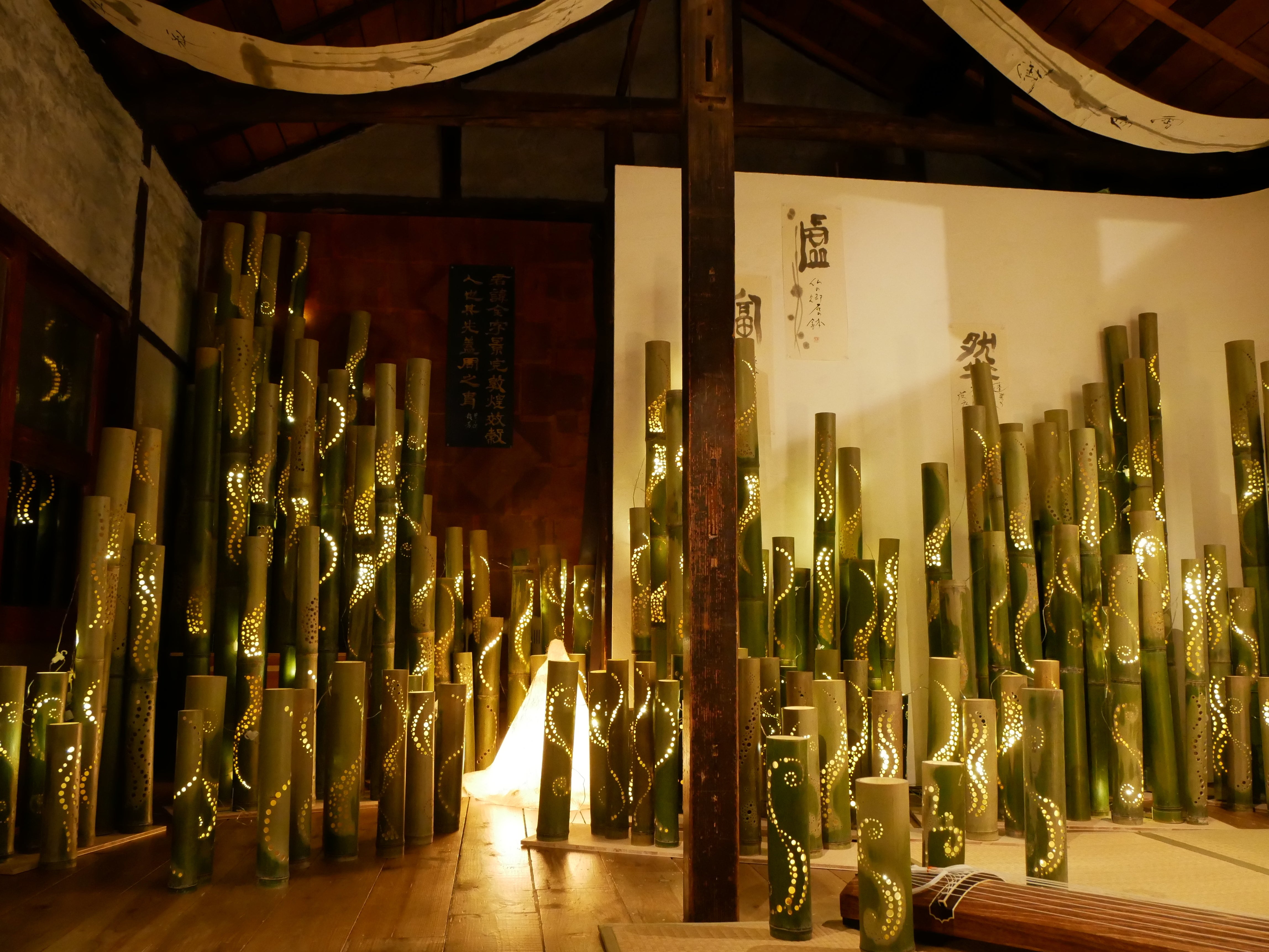 お披露目パーティも路地裏寺子屋さんで行います。現在、書と竹あかりのイベントを行っているのでお近くの方は覗いてください。