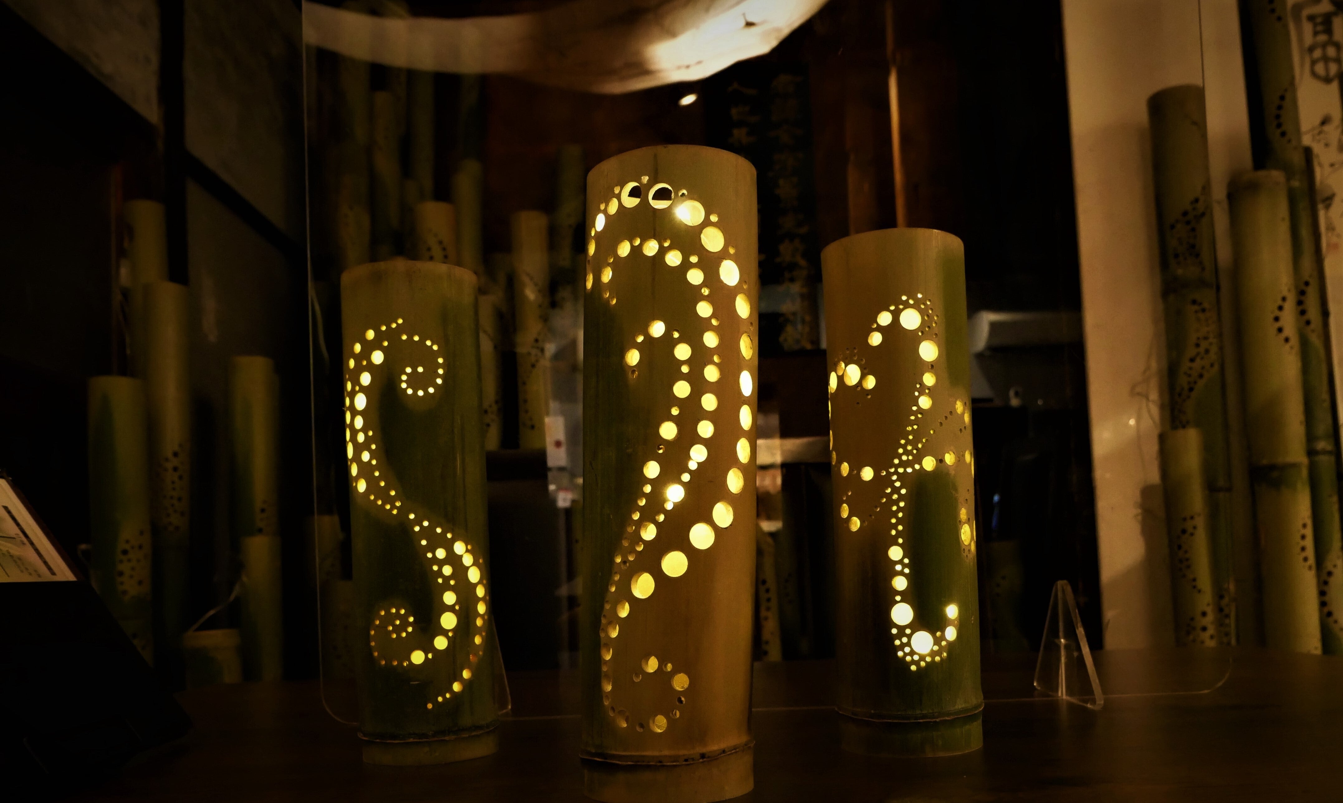 イベントでお世話になっている北千住の古民家カフェ路地裏寺子屋さんの、竹あかりランプです。