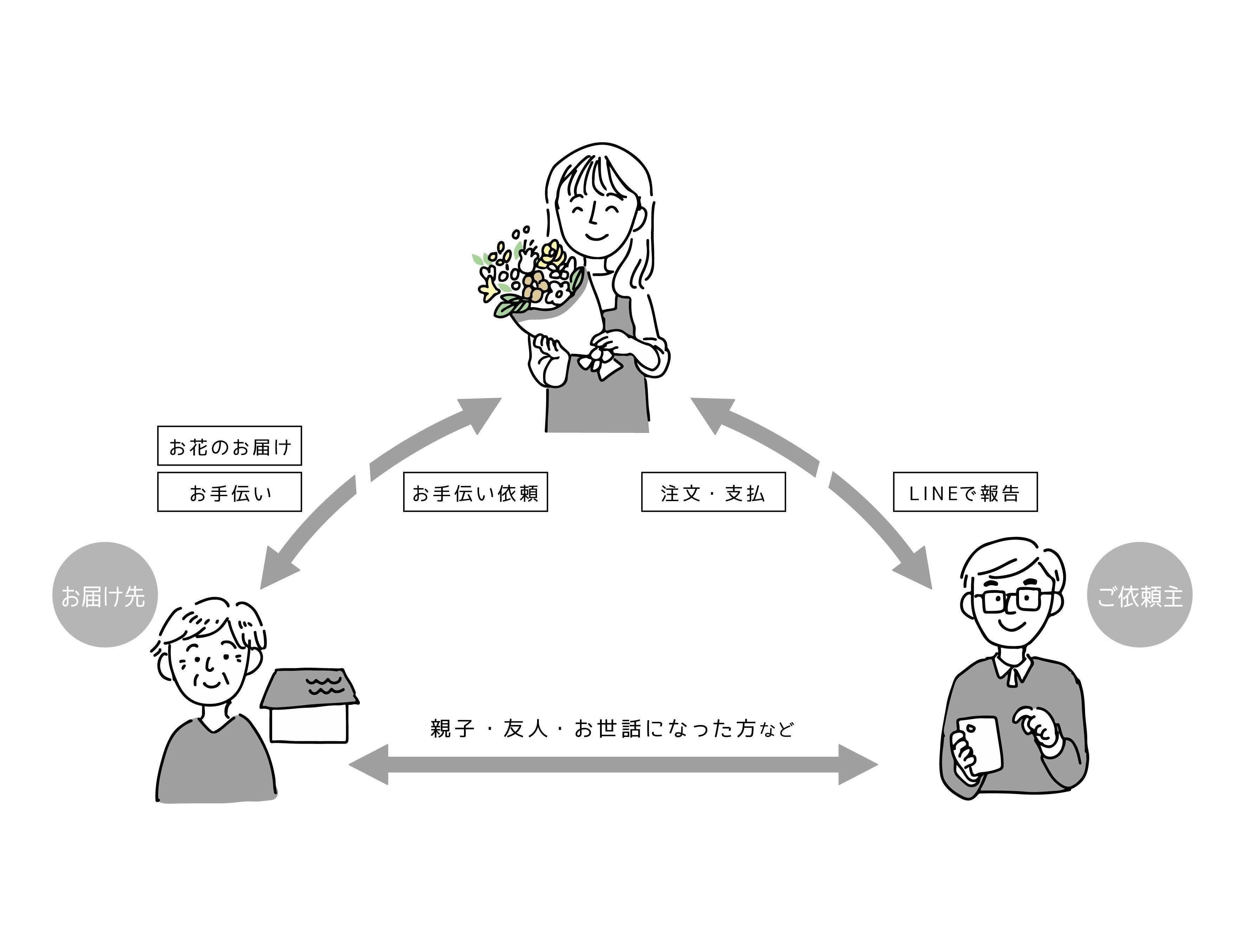お花の配達に加え、1時間までのお助けサービスを提供します。