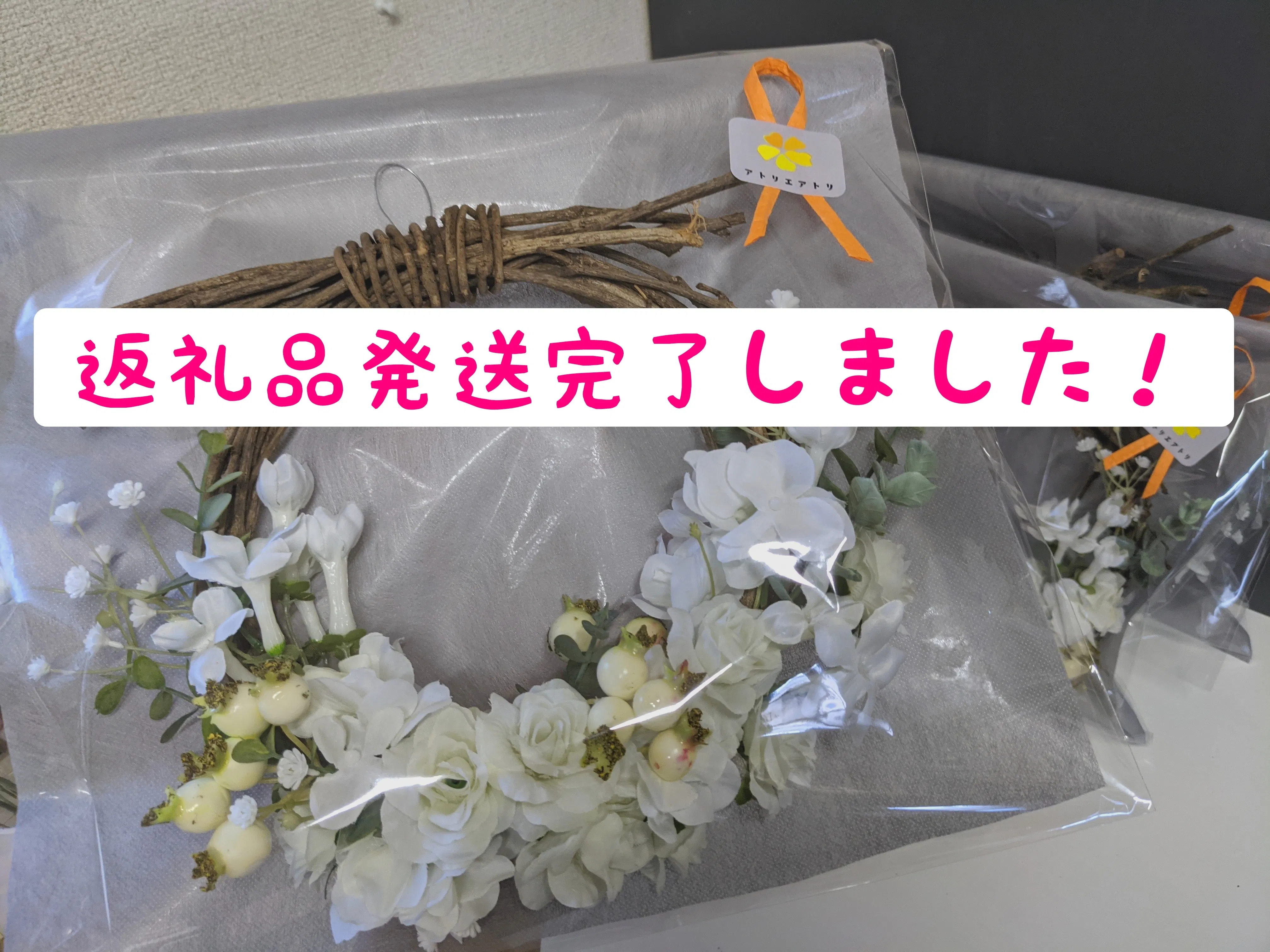 先程、まだお送り出来ていなかった返礼品「リース」を発送いたしました!