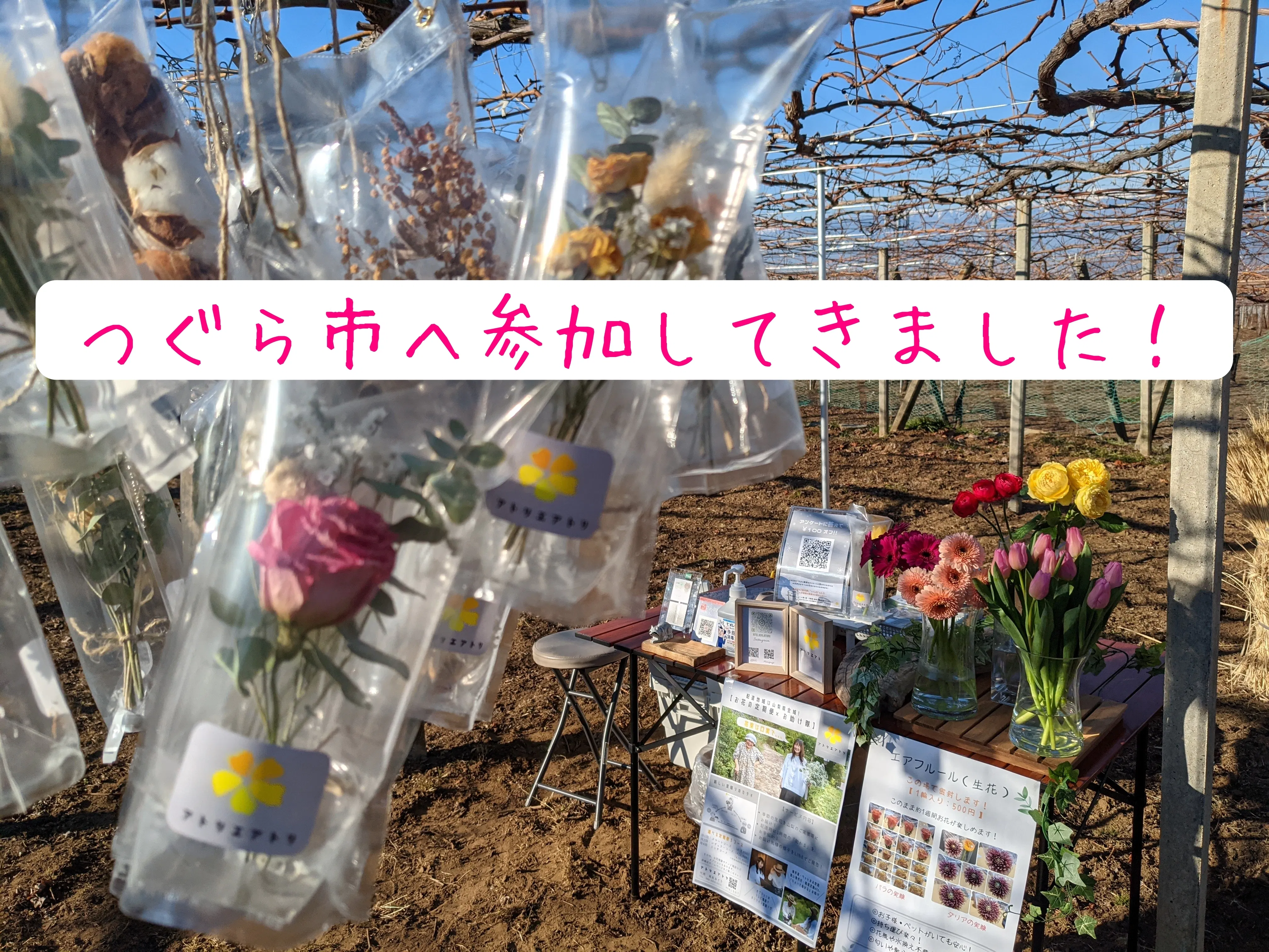 ドライフラワーもぶどう畑のワイヤーに揺られて気持ちよさそう!