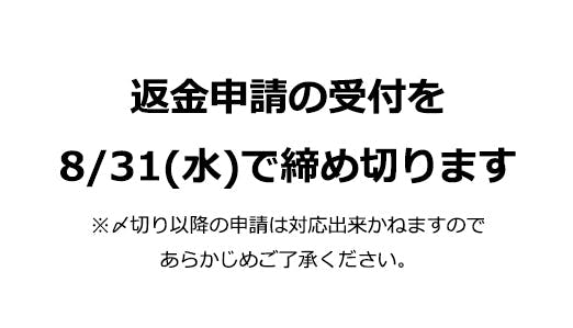 【8/31返金申請終了のお知らせ】