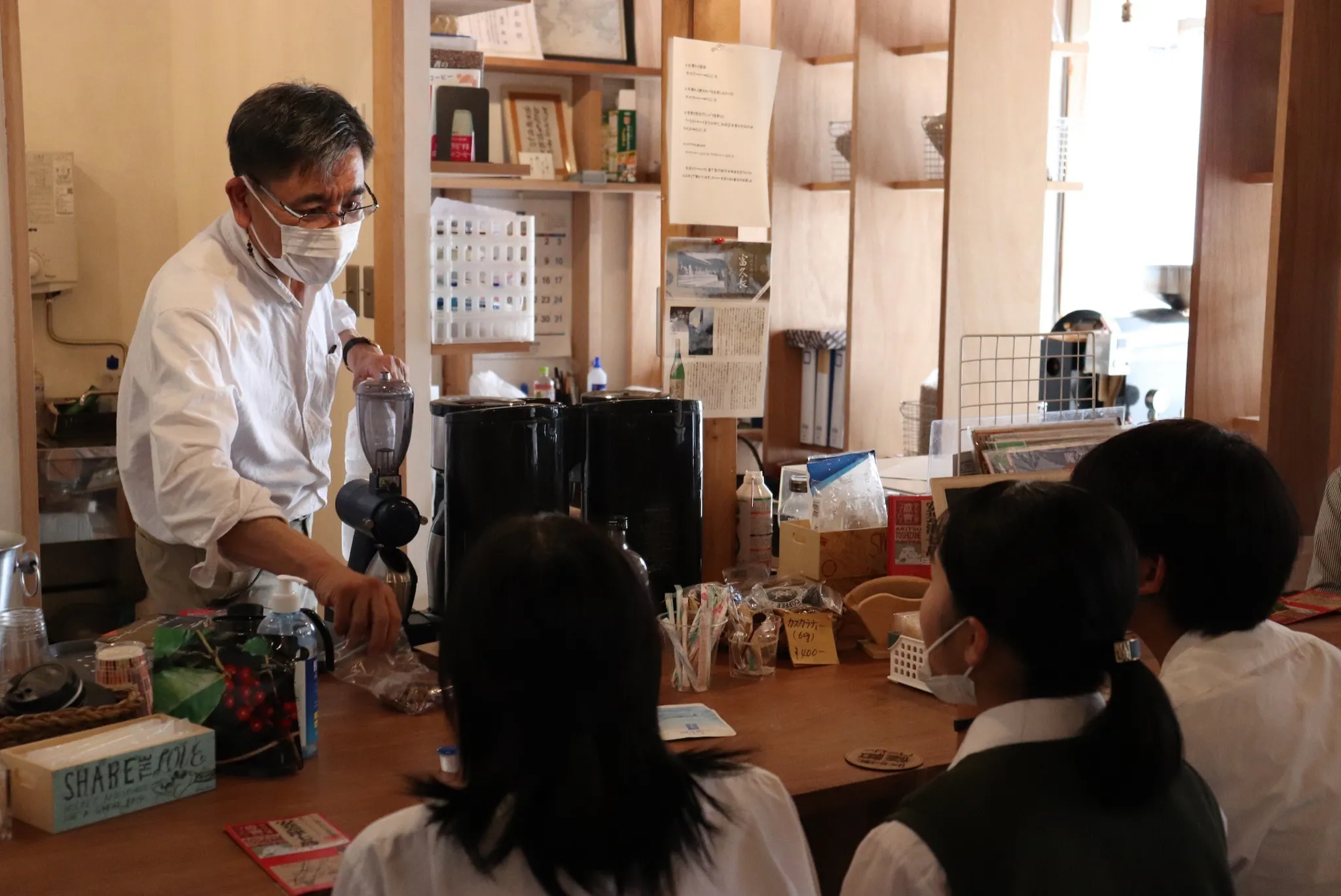 今回のこの珈琲開発は、高校生以外にも2人の専門家の方が一緒に取り組んでくださっています。1人目は、東広島市安芸津町にある「安芸津歳實コーヒー」のオーナー、歳實勲さんです。この安芸津歳實コーヒーは、2018年夏、記録的な豪雨災害に見舞われ、以前営まれていた小さな焙煎工場を店舗改修される形で生まれ変わりました。歳實さんは、安芸津湾や三津湾に浮かぶ7つの島の名前がつけられている珈琲豆「安芸津七島シリーズ」の開発なども手がけていらっしゃいます。