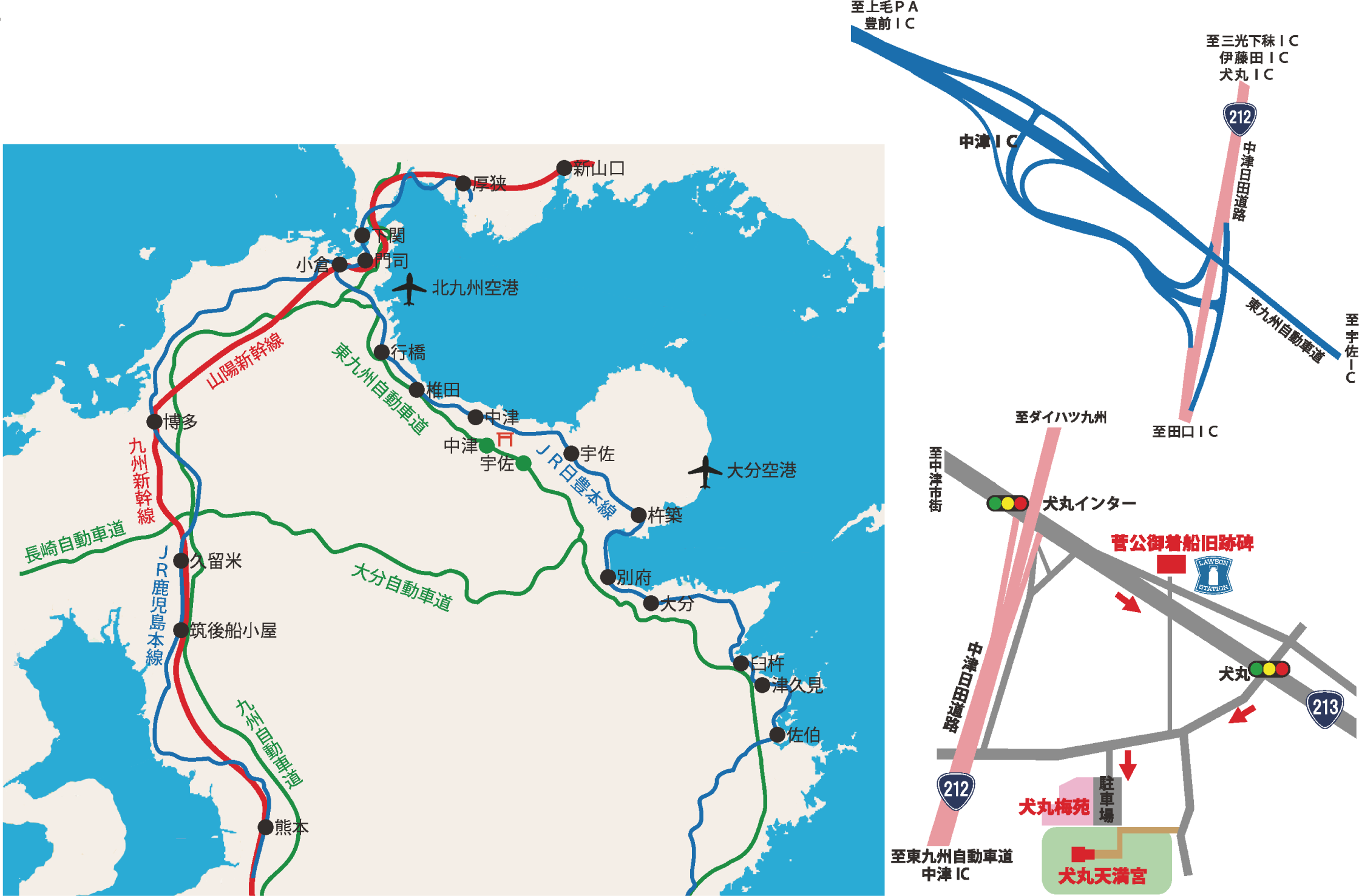 ■自動車/東九州自動車道中津ICより車で15分・中津日田道路犬丸ICより車で4分