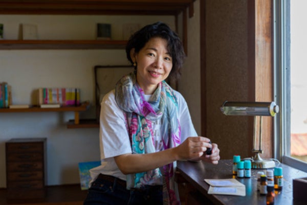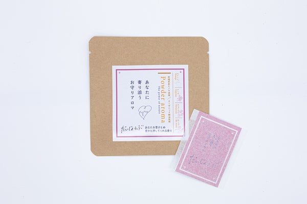 美香さんから、支援している親子さん達をいつでも応援できるようなアロマのアイテムを作りたいと聞いた時、普段からアロマの力を実感している私はその思いに強く共感しました。手軽に安心して使え、持ち運びしやすく、安価で安全な品質の商品というのはなかなかハードルが高く、開発が大変でしたがこのパウダーアロマは最適だと思います。開封した後も香りが少しずつ変わりながらも、コンセプトに合うように考えました。天然の香り、植物の力が文字通り香りのお守りになれたら、本当に嬉しいです。