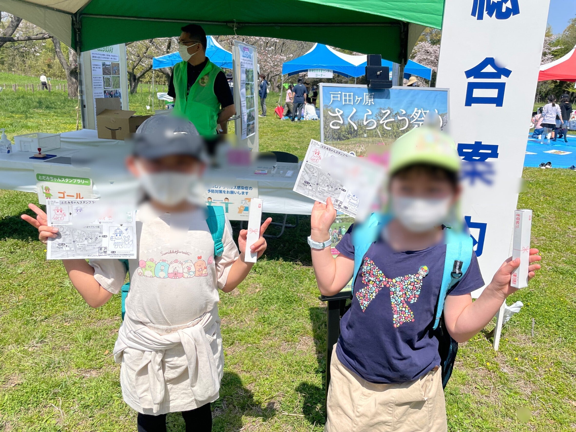 パーク到着後、さくらそう祭りの会場に向かう途中にスタンプラリーの台紙が用意されており、スタンプを押しながら進んでいくと受付がゴールになっていました。