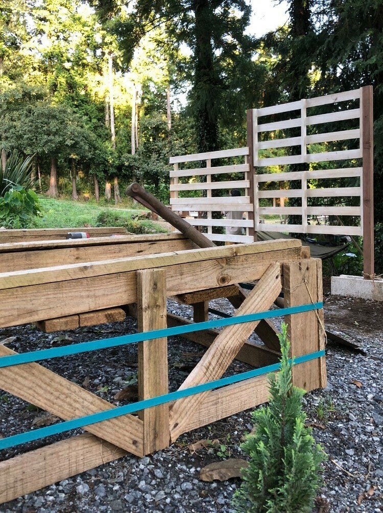 以前知り合いにいただいた木製のパレットでフェンスを作ってます!