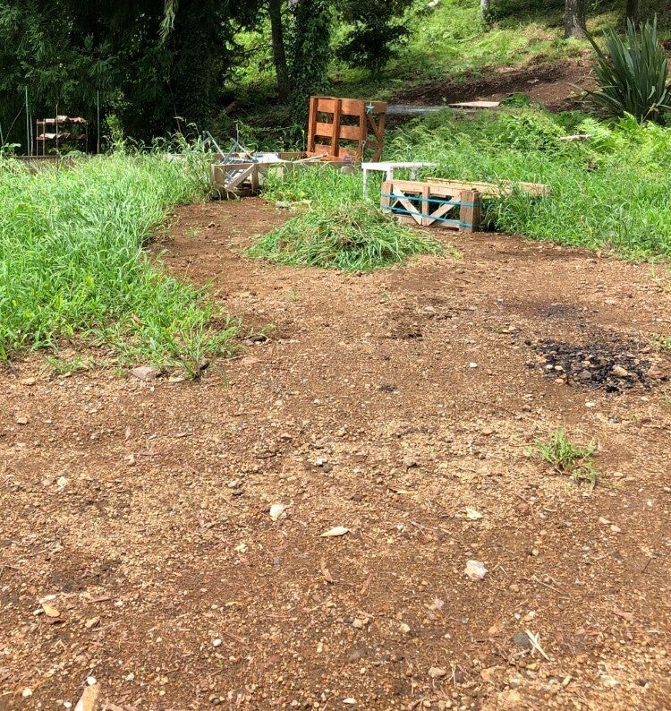8/22 晴れ時々曇り御支援 アドバイスたくさんいただいております!本当にありがとうございます!今日は朝から除草しながら 隠れ家の様に作りたいサイトのアプローチの導線を考えてます (ーωー)獣道の様にした方が良いか きれいなアプローチにした方が良いか悩んでます Σ(゚∀゚)午後からも暑いけど頑張りますo(`^´*)引き続き御支援よろしくお願いいたします!