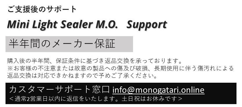 尚、製品到着後に破損や初期不良がある場合には交換させていただきますので「メッセージで意見や問い合わせを送る」から、または弊社連絡先までお問い合わせください。