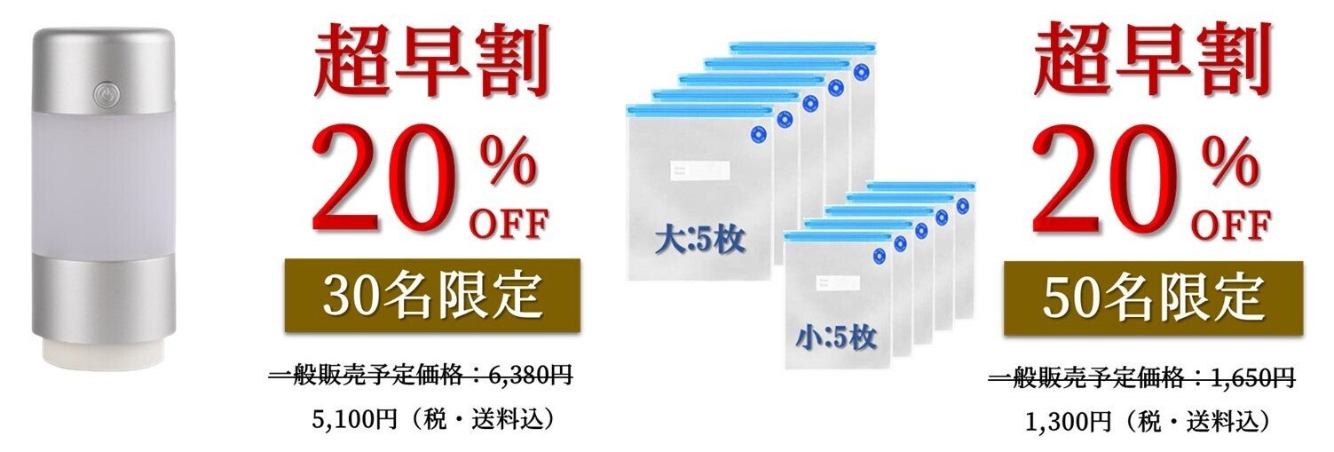 ■早割 『Mini Light Sealer M.O.』15%OFF コース、100名