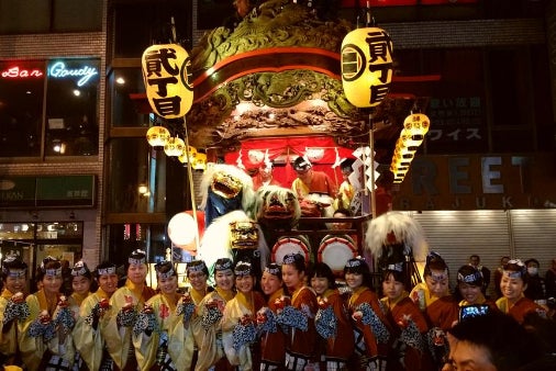 各11カ町の勇壮絢爛な山車や底抜け屋台が街中に繰り出し、にぎやかな屋台囃子が響き渡ります。