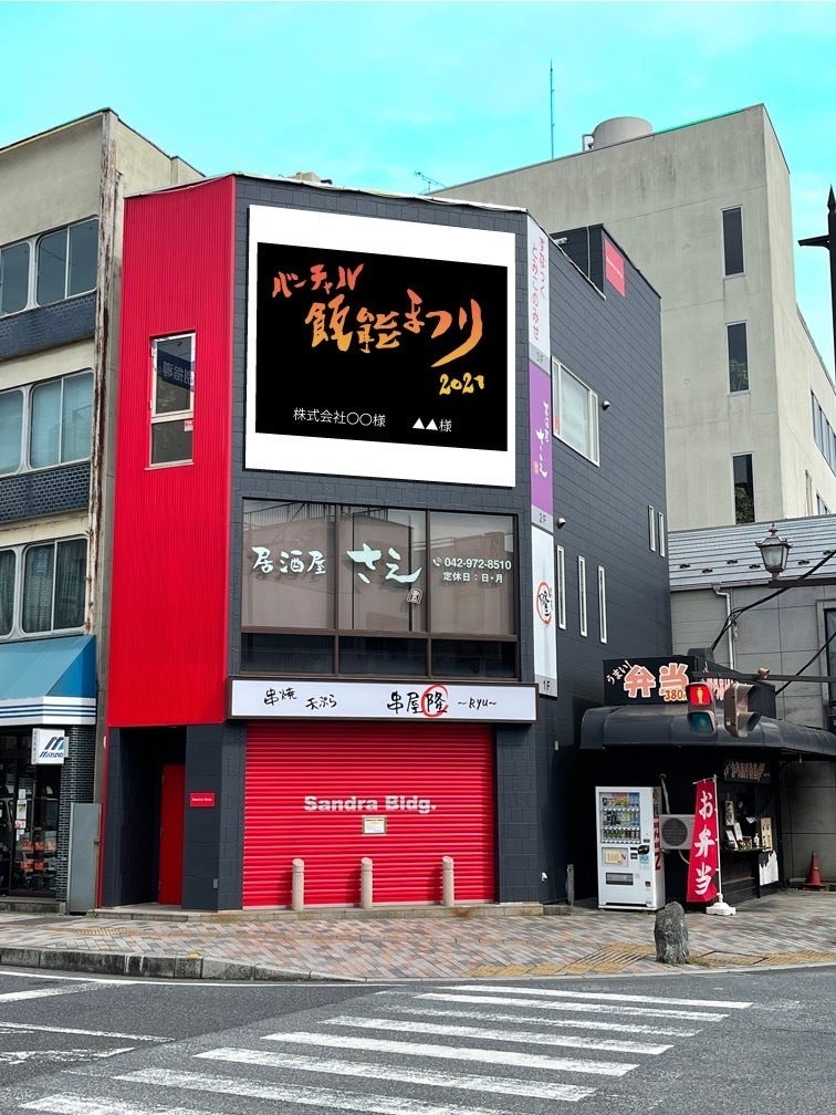 駅前交差点のビルに設置予定のオーロラビジョンにお名前(企業名)を入れさせていただきます。