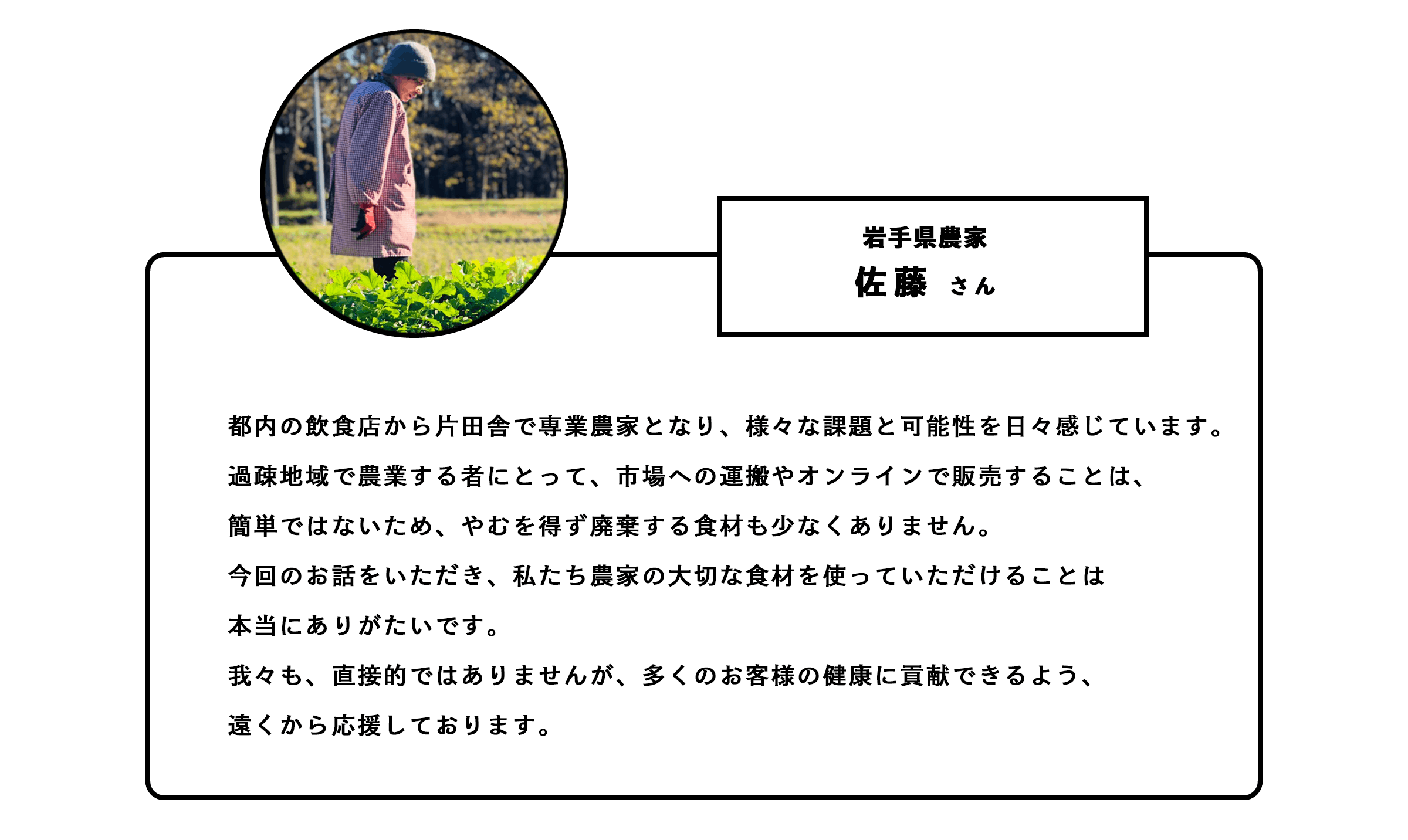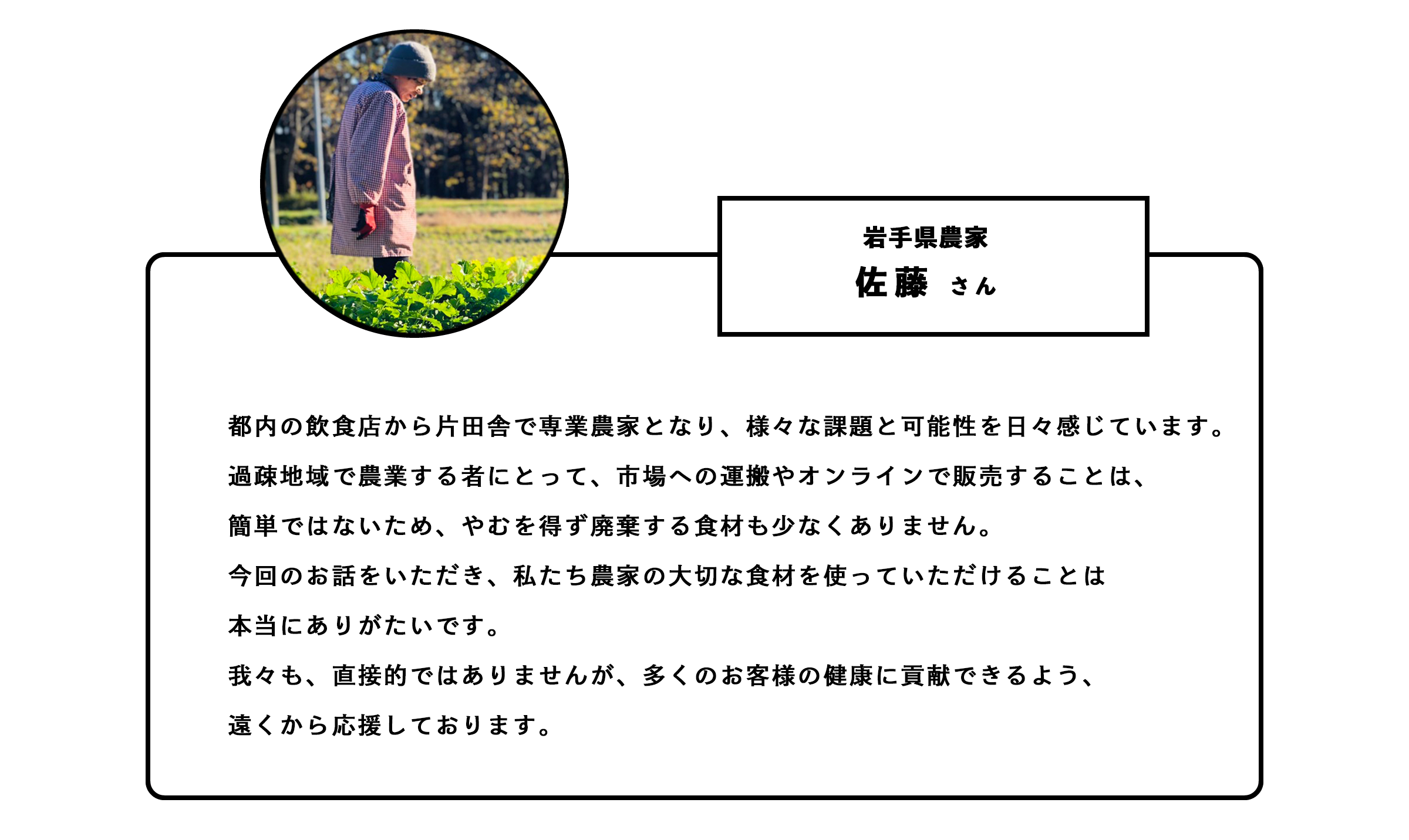 これら多くの『場所』『食材』『人』を失わずにすむお手伝いができればいいと思っています。