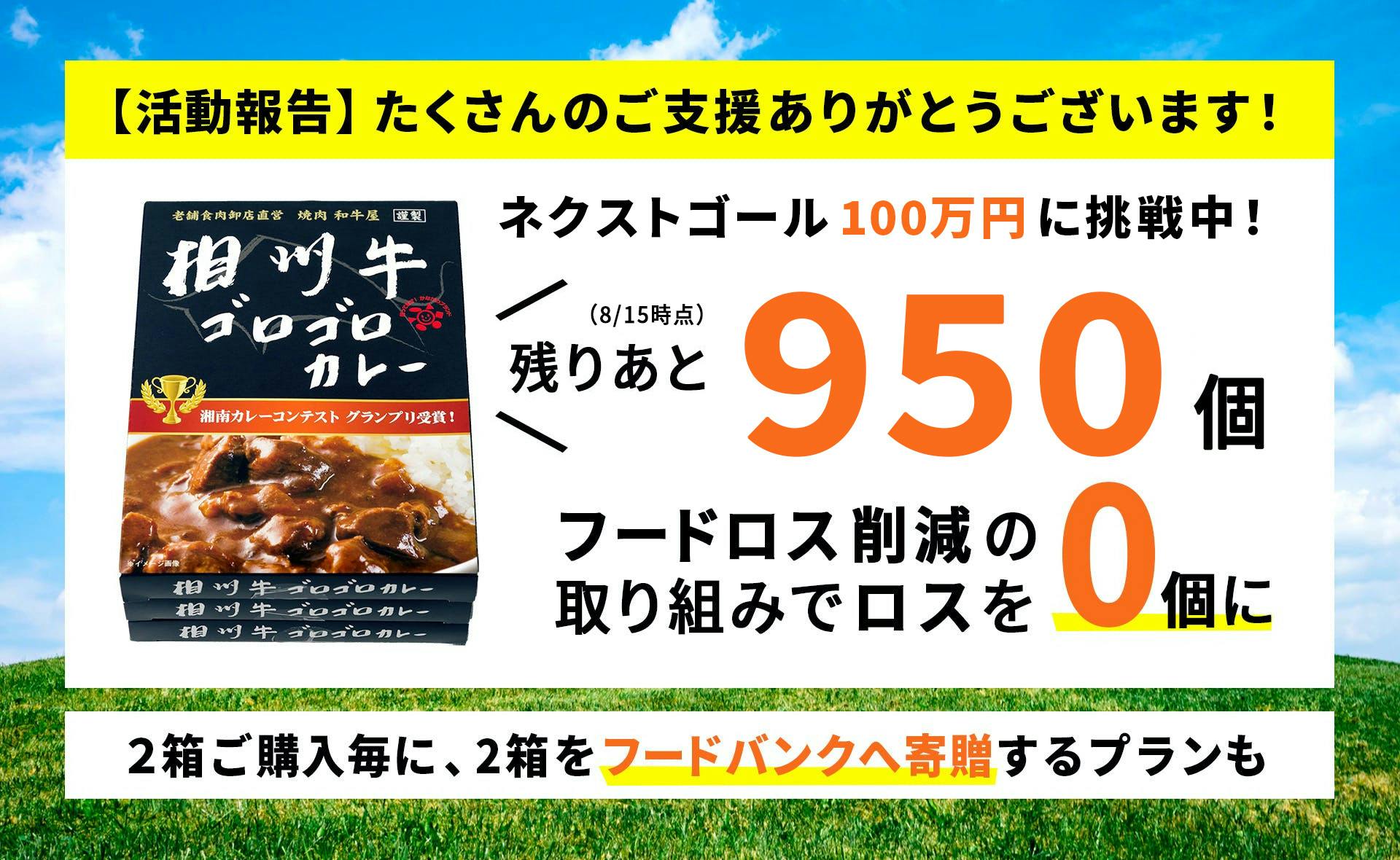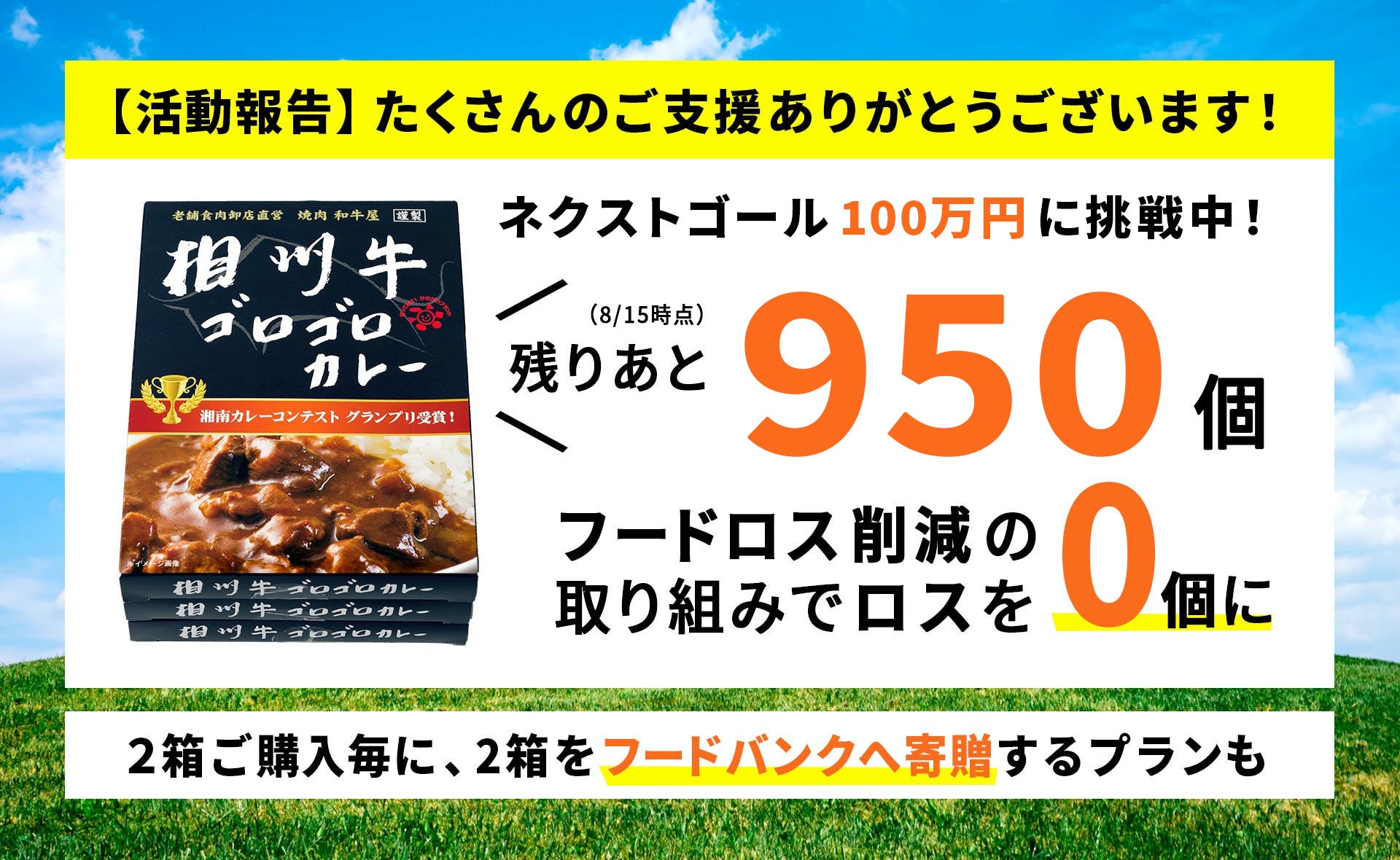 今回のクラウドファンディングで販売しなければならないカレーの在庫も残り950個となりました!