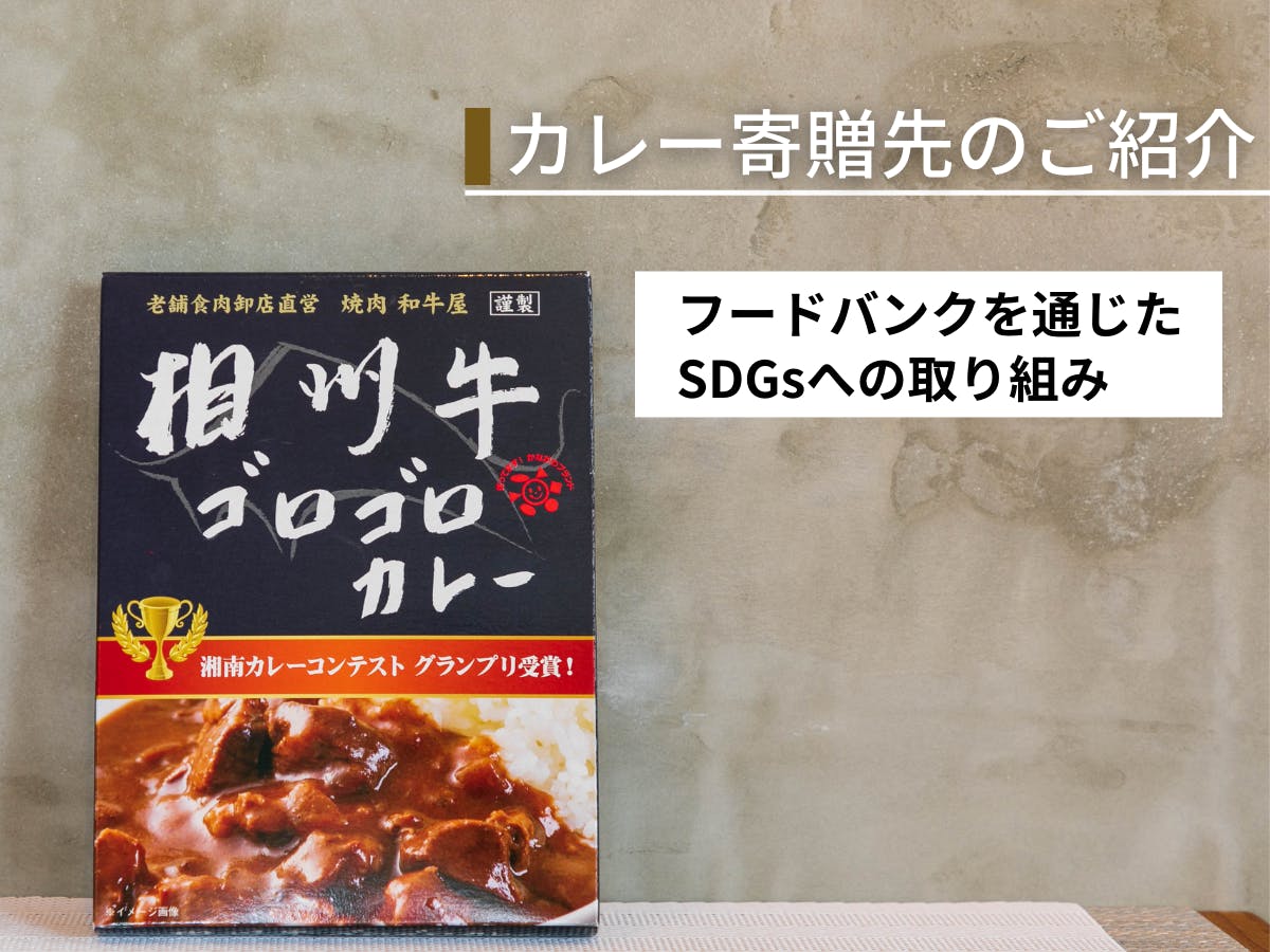文頭でも申し上げましたが、私たちは「食肉」に携わる企業として、「食」に関わる社会問題へ積極的に取り組んでいきたいと考えております。同じ地域、町で活動される報徳食品センター様の理念や活動に感銘を受け、今回のクラウドファンディングに合わせて、相州牛のゴロゴロカレーの寄贈活動を実施することを決定しました。クラウドファンディング上で寄贈分のリターンを募りますが、集まりきらない分は中川食肉から寄贈させていただく予定です。今回このクラウドファンディングをきっかけに、皆様にフードバンクの取り組みを知っていただき、ご賛同をいただける皆様と共に力を合わせて取り組んでいきたいと考えています。ご賛同をいただける場合は是非、寄贈プランをご検討いただけると幸いです。