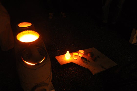 陶器を移動可能な陶芸窯で焼き、取り出す時には陶器は「黄金」に輝いています。