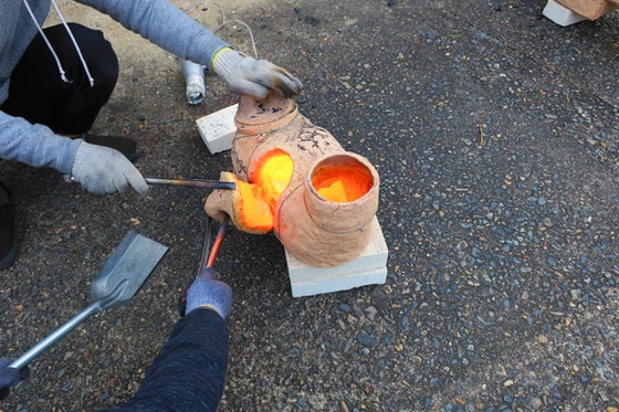 これまで窯から炎が上がる瞬間の写真や燃料を入れる瞬間の写真などをお伝えしましたが、実は一番熱さを感じるのは窯から出来上がった作品を取り出す瞬間です。