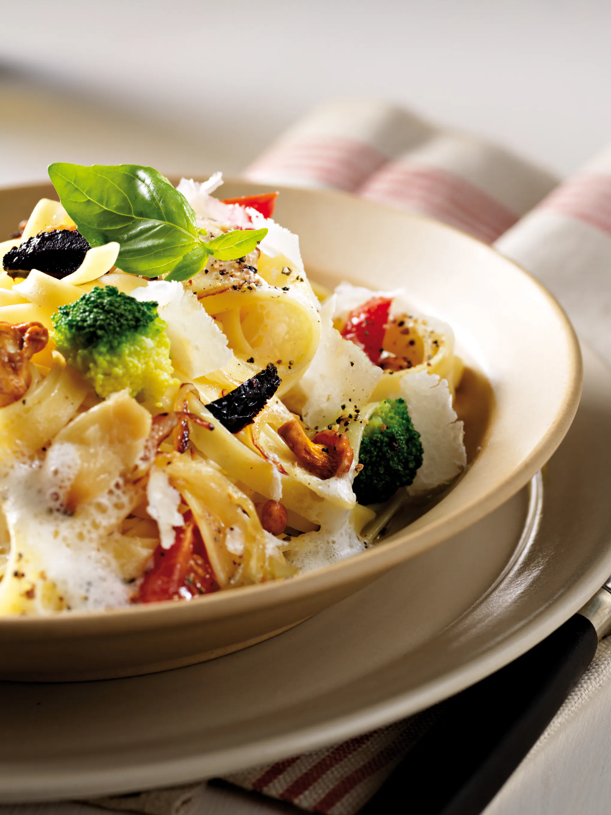 イタリア産・白トリュフに、イタリアのマツタケと称されるポルチーニ、黒アンズタケ、黒トリュフ、エリンギ、マイタケ、ヌメリイグチ、アガリクスの粉末を贅沢にブレンド。