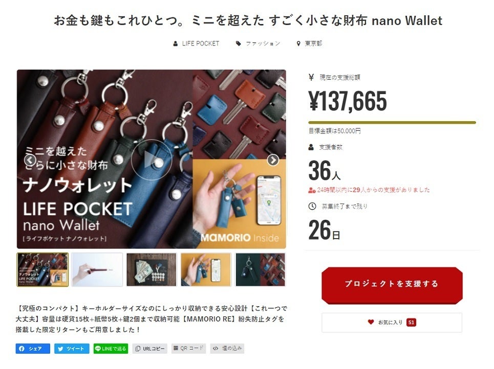 ご賛同とご支援を頂きました皆様の想いを胸に、「お金も鍵もこれひとつ。ミニを超えた すごく小さな財布 Nano Wallet」を盛り上げていきたいと思います。