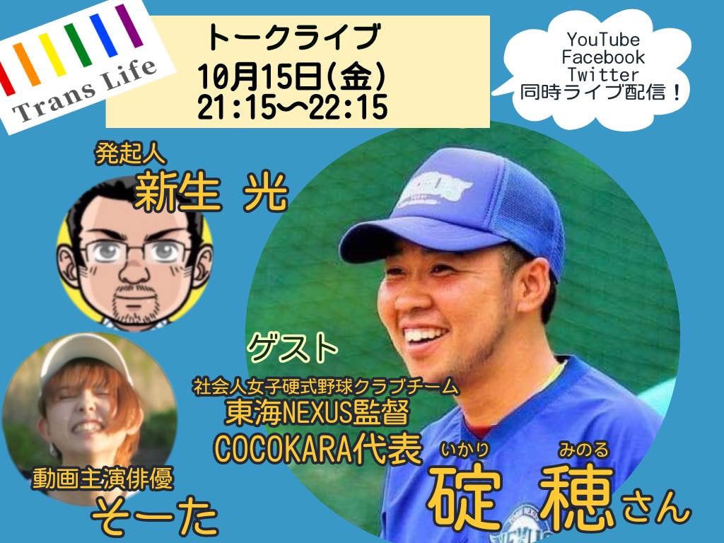 いつもお世話になっております!TransLifeProject代表の新生光です。本プロジェクトの支援者様がついに!!/110名を突破しました!\少しずつ支援・応援の輪が広がっていて感謝の日々です。!支援金額も70万円を超えてて、達成率は24%残り5日でラストスパートのタイミングです!先日は法人・団体からのご支援もいただき、本プロジェクトに対しての期待感や将来への希望を感じていただけた結果だと自負しています。目標達成まではまだまだですので、本プロジェクトへの期待を込めてご支援をよろしくお願いいたします!【コラボ動画配信はビッグゲスト登場です!】9月25日からストリームヤードを使ったコラボLIVEを配信しています。◇FacebookLIVE◇YouTubeLIVE◇TwitterLIVEの3チャンネルで同時配信なので、普段ご利用いただいてるSNSで視聴できます。本日10月15日(金)21:15~22:15■お相手社会人女子硬式野球クラブチーム 東海NEXUS 監督COCOKARA 代表である「碇穂(いかり・みのる)様」です!最近はTwitterでもトレンド入りするくらい話題を呼んだ方です!■トークテーマ「アスリートとジェンダー」【今までコラボLIVEした方々のご紹介】①木島瑞歩さん(株式会社toiro代表取締役社長)②鶴岡そらやす先生(合同会社Be Brave代表・教育実践家)③定政輝さん(奈良レインボーフェスタ代表・株式会社Rainbow Create代表)④矢澤修さん(株式会社イースマイリー代表取締役社長・ソーシャルインパクトデザイナー)⑤野田涼さん(Aixx's(エクシス)代表・DJ Ryyo)⑥井上ひろみさん(特定非営利活動法人カラフルブランケッツ理事長・獣医師)⑦佐藤律子さん(一般社団法人 異性間コミュニケーション協会代表理事)▶コラボLIVEの様子はこちら【インスタライブも行いました(お相手のチャンネルです)】①じんぺーさんhttps://www.instagram.com/tv/CUUwovPIzuk/?utm_medium=copy_link②本編動画に主演するメンバー(るいちゃん・そーた)https://www.instagram.com/tv/CUWXzc3FEYm/それでは残り5日!!ラストスパートです!ご支援応援、情報の拡散など、ご協力よろしくお願いいたします!!!ALLYES代表 新生光