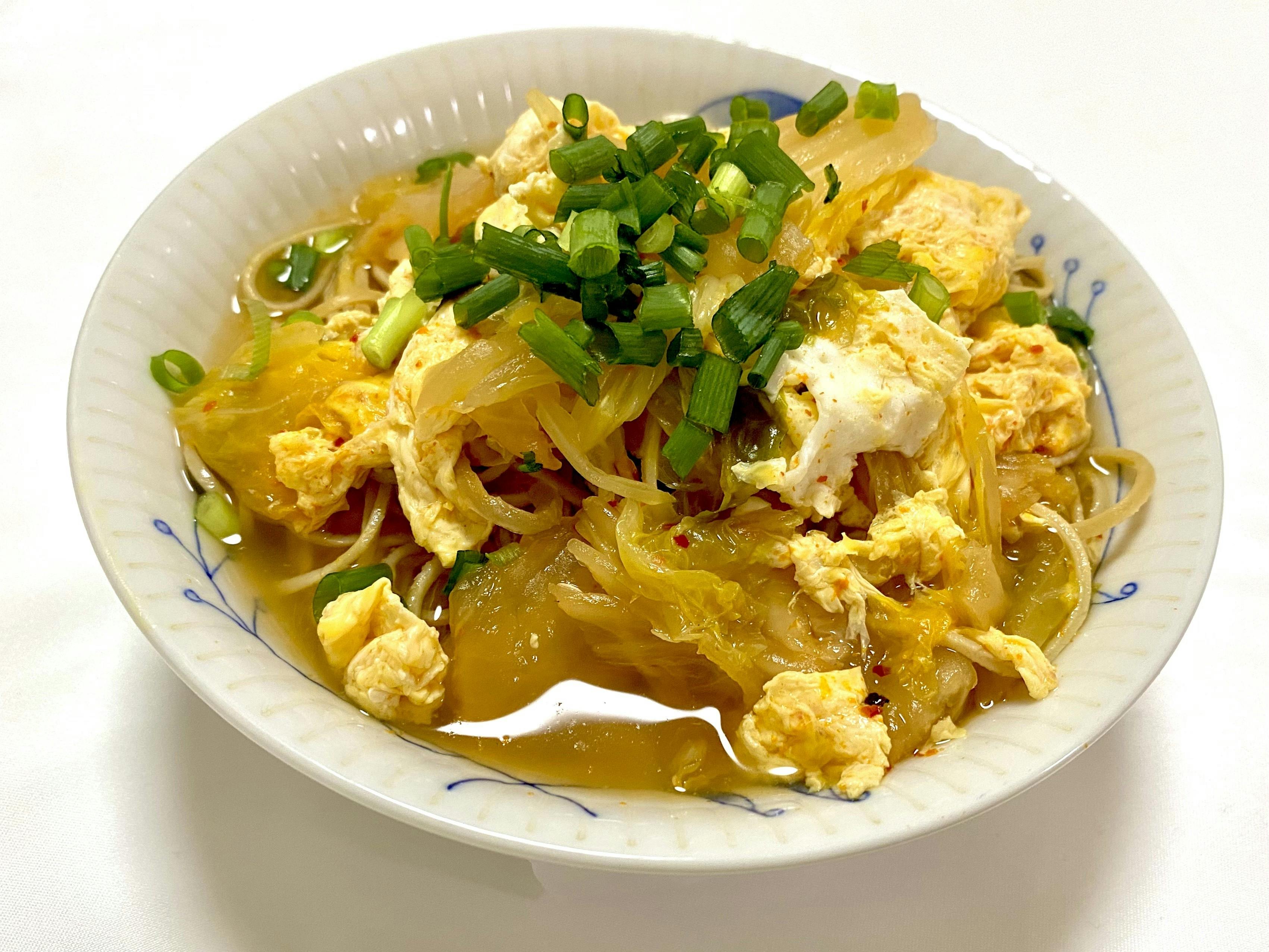 ②鍋に水と鶏ガラスープの素を入れ沸騰させる。