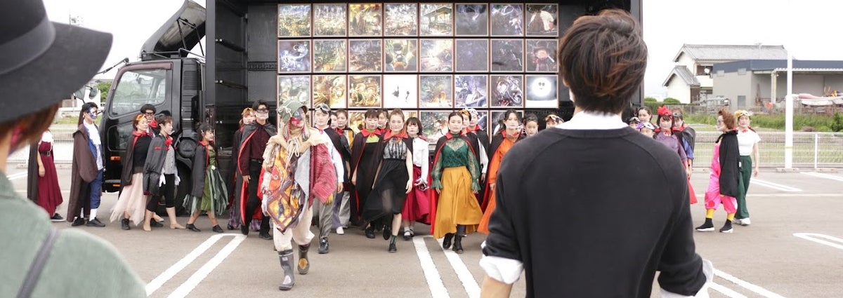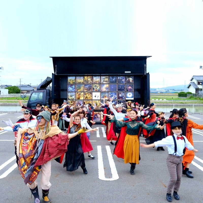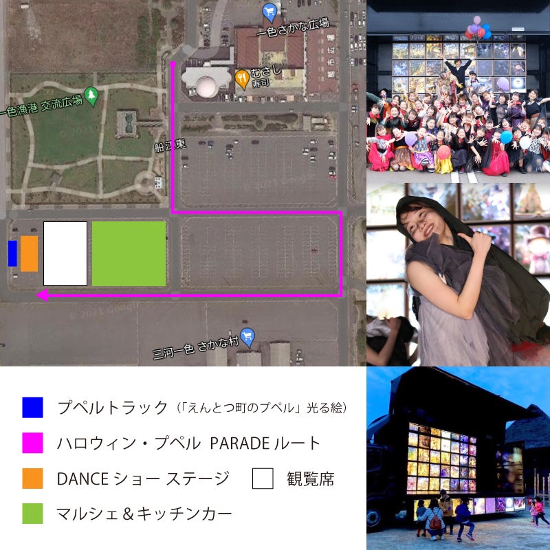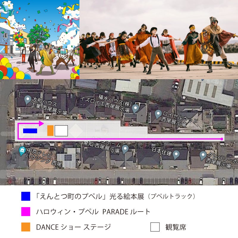 お笑い芸人キングコング西野亮廣さん原作の絵本「えんとつ町のプペル」の挿絵の移動式展覧会であるプペルトラックと、同題材のオフィシャルミュージカル(2021年11月開幕)を担当する世界的振付師SHOJINさん(ラグビーW杯開会式、カリフォルニアディズニー、などのショー振付を担当)率いるSHOJIN DANCE LABOのトップダンサーを招き、絵本の設定であるハロウィンの季節にプペルトラックとダンサーがハロウィンの仮装・ダンスをしながら行進するダンスパレード&ショーです。